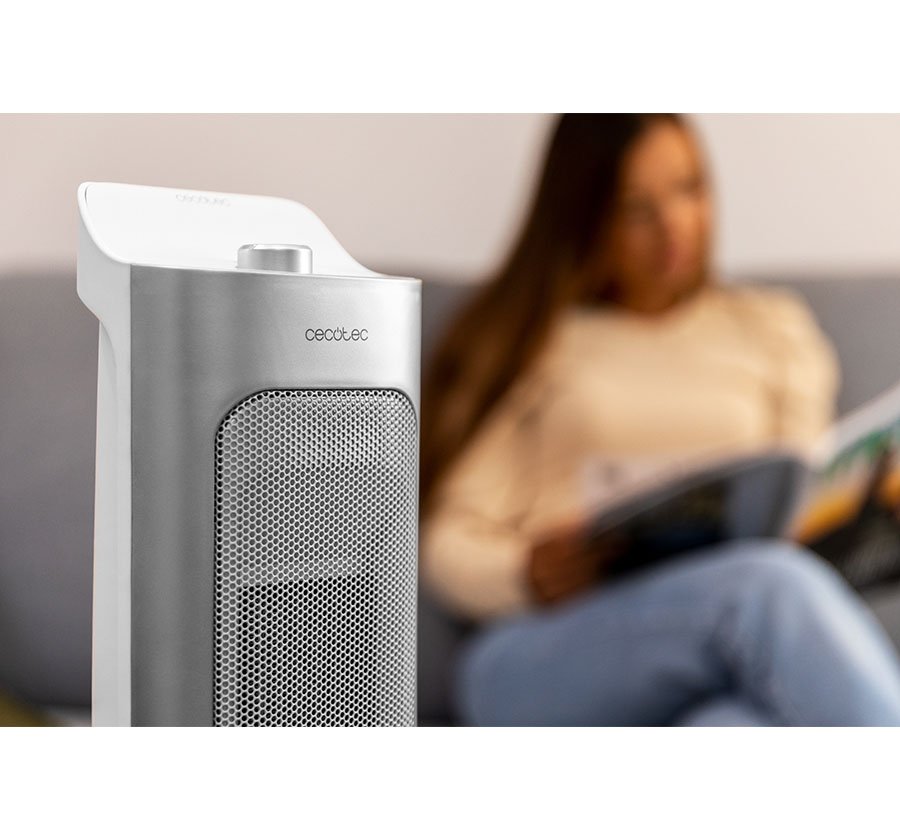 ReadyWarm 6700 Ceramic Sky, Incalzitor ceramic cu 2000 W, functie de oscilatie si 3 moduri Aeroterma ceramica cu putere de 2000 W care datorita tehnologiei sale ceramice puteti obtine o atmosfera calda si placuta. Suprafata de acoperire de pana la 20 m ², egal cu un volum de 45 m3. Perfect potrivit pentru camere de zi, dormitoare, bai, etc. Oscileaza la 45 º, impreuna cu inaltimea sa de 50 cm, ceea ce permite o distributie uniforma a caldurii in intreaga incapere in care este plasat. 3 moduri de functionare datorita termostatului sau reglabil: modul ventilator, modul Eco (1000 W) si modul Turbo (2000 W). Se adapteaza nevoilor dumneavoastra. Datorita motorului sau de curent continuu, functionarea sa este total silentioasa cu doar 30 dB la putere maxima, ceea ce va permite sa utilizati aeroterma in perioadele de liniste, cum ar fi cititul sau privitul la televizor. Potrivit pentru orice situatie si spatiu, intrucat dispune de VerticalDesign, care ii ofera o mare stabilitate, lejeritate, reduce dimensiunile si usurinta de utilizat pentru transportul lui intre camere. Usor de utilizat cu 1 buton permite utilizatorului sa selecteze puterea si modul de operare in mod intuitiv. Dispune de un sistem triplu de securitate: Oprire automata, protectie impotriva rasturnarii sau supraincalzirii si grila care impiedica introducerea degetelor in interiorul dispozitivului. Dimensiuni: 18 x 55.3 x 21.5 cm,1.62 kilogramos