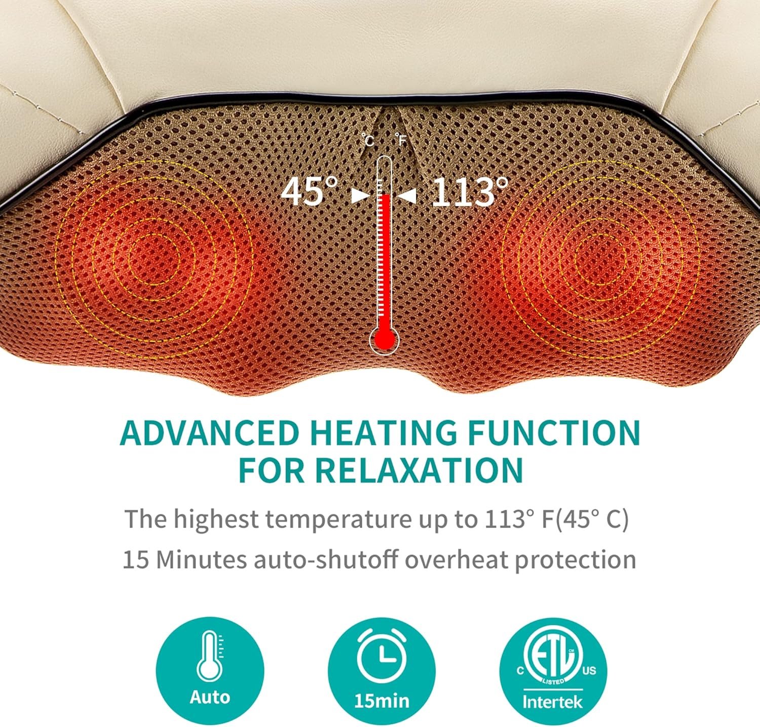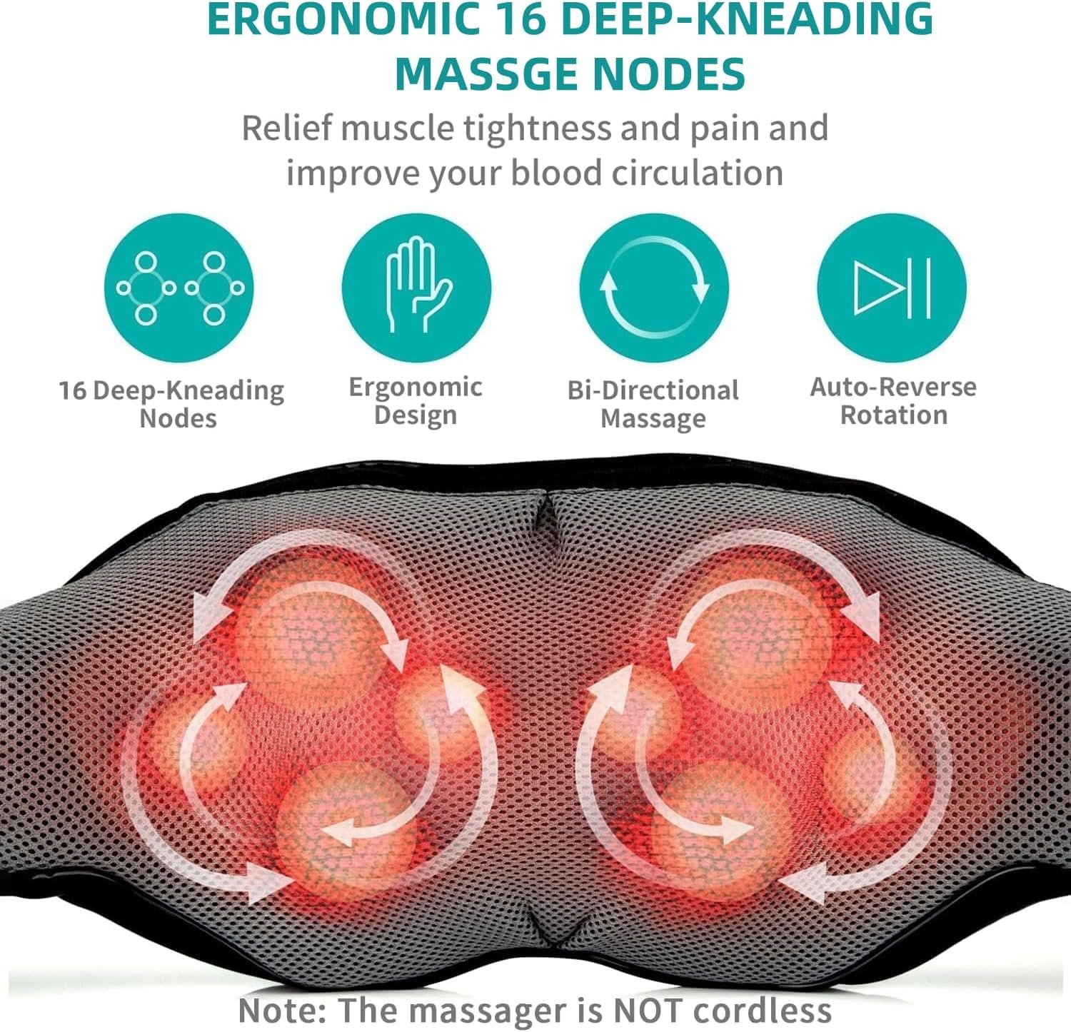 Aparat de masaj umeri, Nekteck A01-NK03, pentru spate, umeri, gat, masaj Shiatsu, incalzire