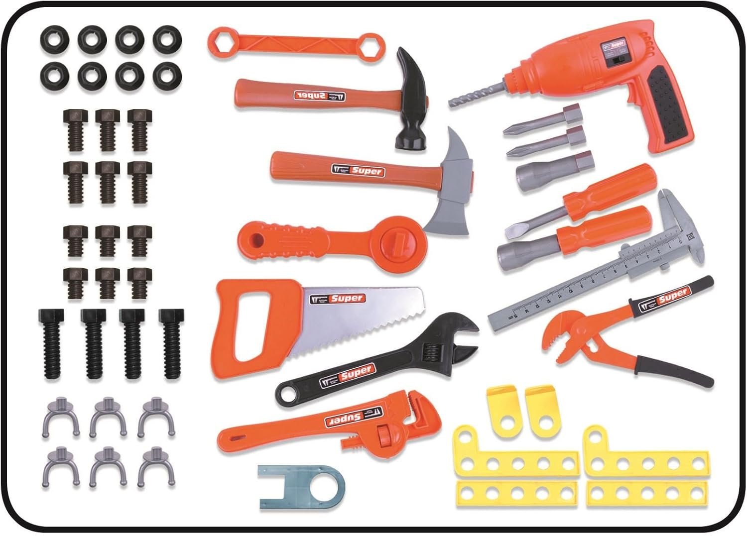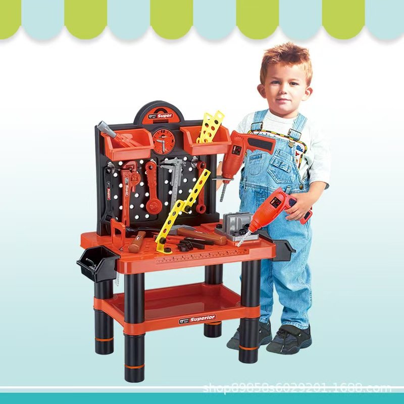 Banc de lucru jucarie Rovo 57008, masina de gaurit electrica, unelte si accesorii, 52 piese