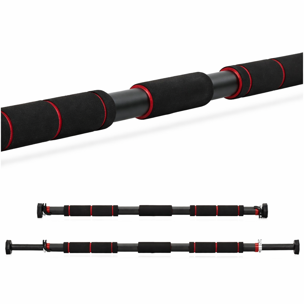 Bara tractiuni reglabila pentru usa 82-130 cm, otel si spuma NBR, capacitate 300 kg, negru