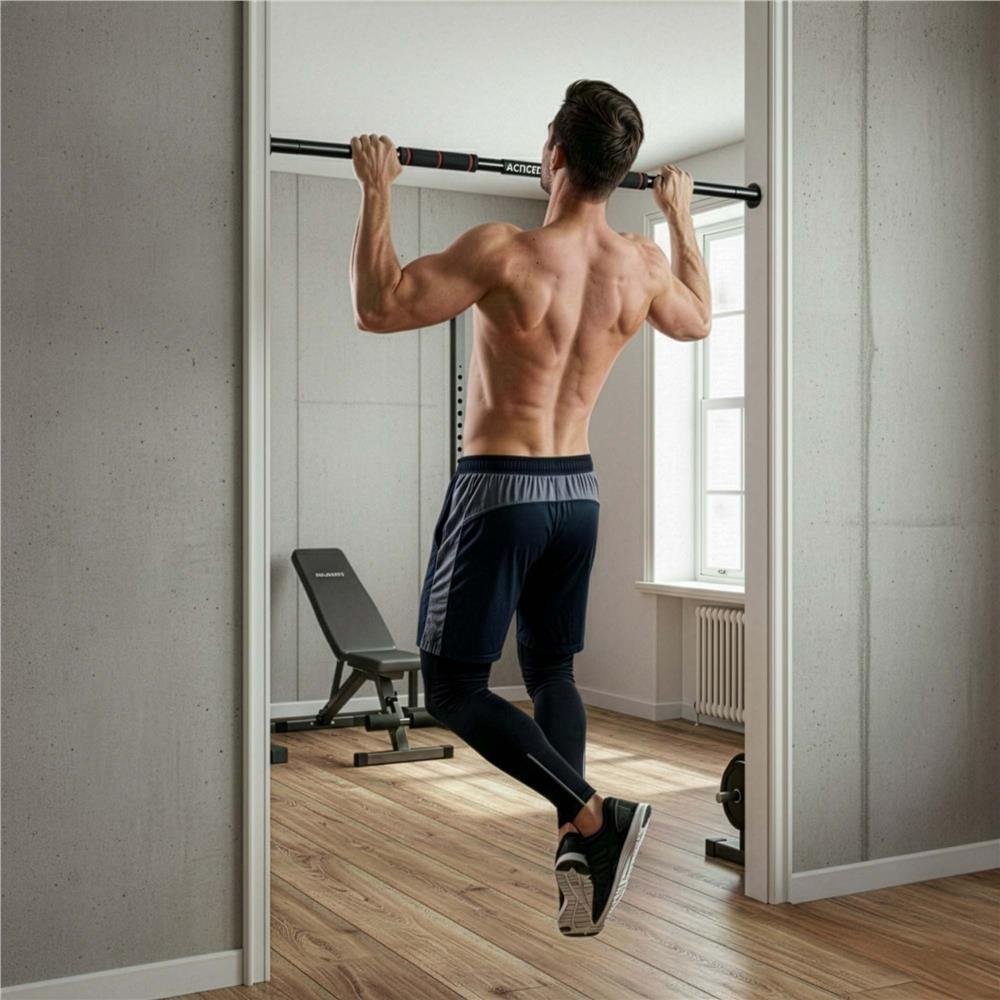 Specificatii tehnice: Material: otel, spuma NBR Culoare: negru Capacitate maxima: 300 kg Numar manere: 3 Tip manere: antiderapante Diametru manere: 40 mm Diametru profil: 33 mm Grosime spuma: 3 mm Lungime bara: 76 cm Lungime reglabila: 82-130 cm Lungime manere laterale: 19.5 cm Lungime maner central: 11.5 cm Dimensiuni suport montaj: 5 x 5 cm Toleranta dimensiuni: 2% Scurta descriere: Bara pentru tractiuni reglabila este ideala pentru antrenamente acasa, fiind potrivita pentru exercitii pentru spate, brate si abdomen. Constructia solida din otel asigura stabilitate si rezistenta ridicata, iar manerele acoperite cu spuma NBR ofera prindere confortabila si sigura. Sistemul reglabil permite montarea in majoritatea tocurilor de usa, iar suporturile pot fi fixate suplimentar pentru stabilitate maxima. Caracteristici principale: Constructie rezistenta din otel pentru stabilitate ridicata Lungime reglabila pentru montaj in diferite tocuri de usa Manere antiderapante cu spuma NBR pentru confort Trei zone de prindere pentru exercitii variate Capacitate maxima de incarcare pana la 300 kg Potrivita pentru antrenamente de forta acasa