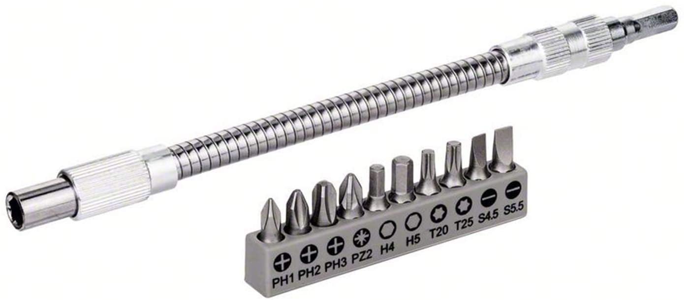Setul de biți și prelungitor flexibil Bosch 2608522376 este un accesoriu indispensabil pentru profesioniști și pasionații de bricolaj, oferind o combinație ideală de versatilitate și eficiență;