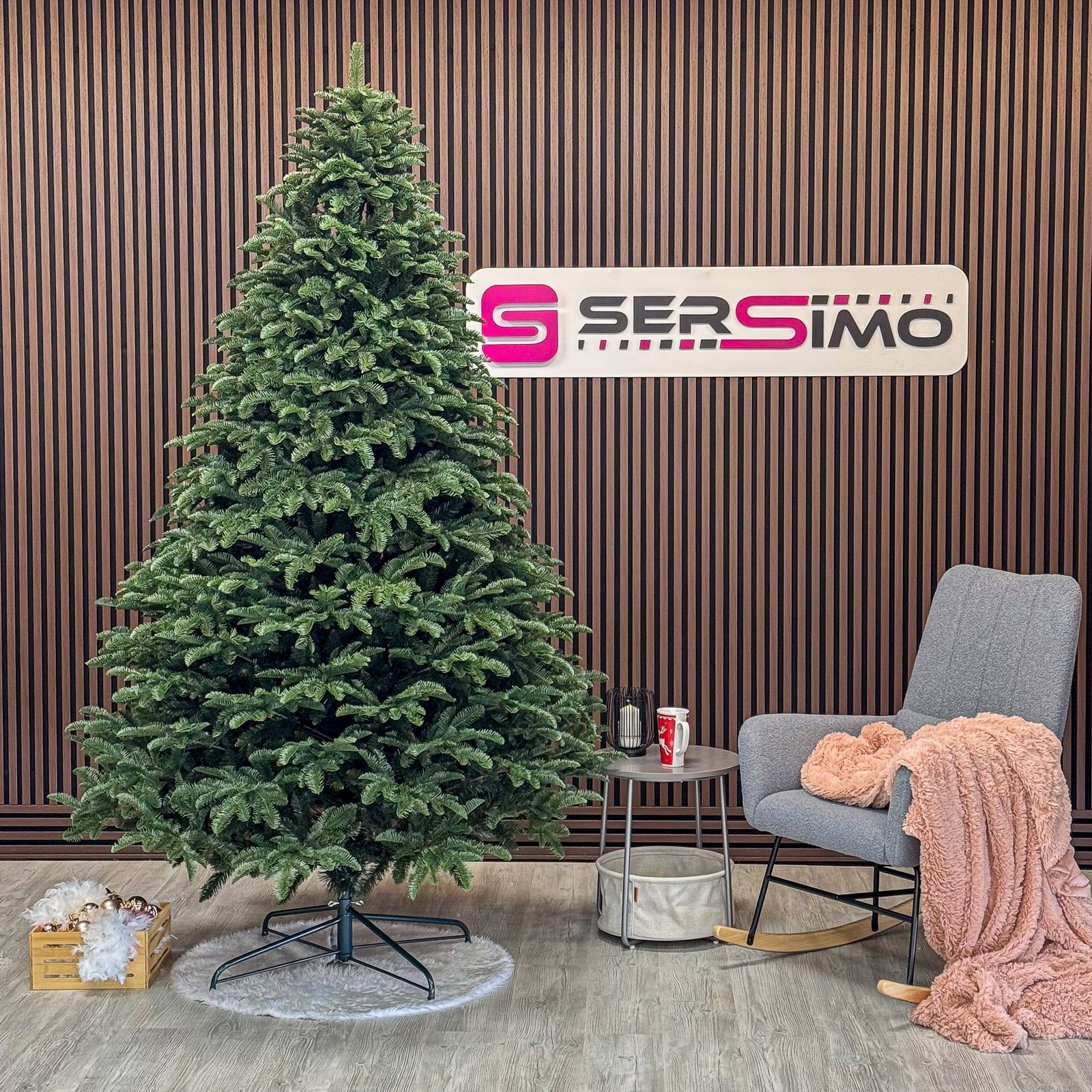 Imagine reala de prezentare pentru modelul Alaska, verde, mix 2D+3D, 250 cm PARAMETRII: – Inaltimea totala a bradului (dimensiune masurata de la podea pana in varf, cu tot cu suport): 250 cm – Diametrul (latimea la baza in cel mai lat punct): 170 cm – Numarul total al ramificatiilor: 1807 dintre care:– Crengute 2D, material PVC: 912– Crengute 3D, material PE: 895– Suport inclus: metal– Zapada: NU– Alte decoratiuni: -– Greutate (fara ambalaj): 29 kg– Dimensiune ambalaj carton: -– Sistem instalare: balamale tip umbrela BRAD DE CRACIUN UNIC PENTRU CRACIUN UNIC Ce poate fi mai fermecator decat atmosfera unica a Craciunului? Si probabil ca niciunul dintre noi nu se indoieste ca un brad splendid impodobit este cel mai important element care construieste aceasta atmosfera magica de Craciun. La urma urmei, ritualul anual al impodobirii in familie a bradului de Craciun este unul dintre cele mai de neuitat momente, evocand multe amintiri frumoase. Bradul de Craciun prezentat va reflecta atmosfera minunata a Craciunului intr-un mod unic, si in acelasi timp atat de cunoscut si de indragit, subliniindu-i caldura si atmosfera de familie. DESCOPERA AVANTAJELE POMULUI NOSTRU DE CRACIUN – manopera precisa, imbinand soliditatea cu eleganta– densitate mare de ramuri si ace– distributie uniforma a acelor pe toata ramura – fara goluri– spatiu liber sub etajul inferior pentru cadouri– posibilitate de modelare a crengutelor in mai multe moduri– varietatea si realismul capetelor de crenguta– culoarea acelor imitand perfect acele naturale– diferentierea ramurilor – in functie de nivelul de inaltime– grosimea si durabilitatea firelor– fiabilitatea intregii structuri – arborele este aproape imposibil de distins de brazii naturali Cu bradul Christmas Deluxe by Sersimo® – un element inseparabil al Craciunului – veti petrece aceasta perioada magica de iarna intr-o aura de bucurie si caldura. Ganditi-va doar cat de frumos vor arata decoratiunile – stralucitoare, presarate cu sclipici, incalzind interiorul. Chiar si oamenii care nu impartasesc entuziasmul de Craciun recunosc ca un brad de Craciun impodobit frumos creeaza o atmosfera aparte. Cel mai mare avantaj al bradului nostru de Craciun este numarul mare de ramuri dens aranjate. Datorita densitatii si elegantei sale captivante, nu necesita prezenta a numeroase decoratiuni, fiind cu adevarat un decor grozav al oricarui interior! Etajul cel mai de jos al pomului de Craciun este la inaltimea potrivita, astfel incat sa puteti pune cu usurinta cadourile de Craciun sub el.Crengile pot fi indoite cu usurinta in diferite directii pentru a modela diferitele ramuri ale pomului si a le da forme diferite. Crengutele individuale au finaluri realiste si variate, iar niciuna nu este taiata intr-un mod artificial si inestetic. Culoarea lor intr-un mod extrem de realist imita culoarea reala a coniferelor si nu se estompeaza in timp. Sarma ascunsa cu grija nu se vede prin ace si, in acelasi timp, este suficient de groasa si rezistenta pentru ca bradul sa va serveasca ani de zile! Ace din folie PVC, puternice si durabile, sunt in acelasi timp extrem de placute la atingere. Deoarece bradul de Craciun – spre deosebire de copacii adevarati – nu ii pierde, nu va fi nevoie sa aspirati camera in mod regulat. Mai mult decat atat, acele sunt distribuite uniform pe toata lungimea ramurii, garantand astfel un efect vizual de densitate, fara goluri.