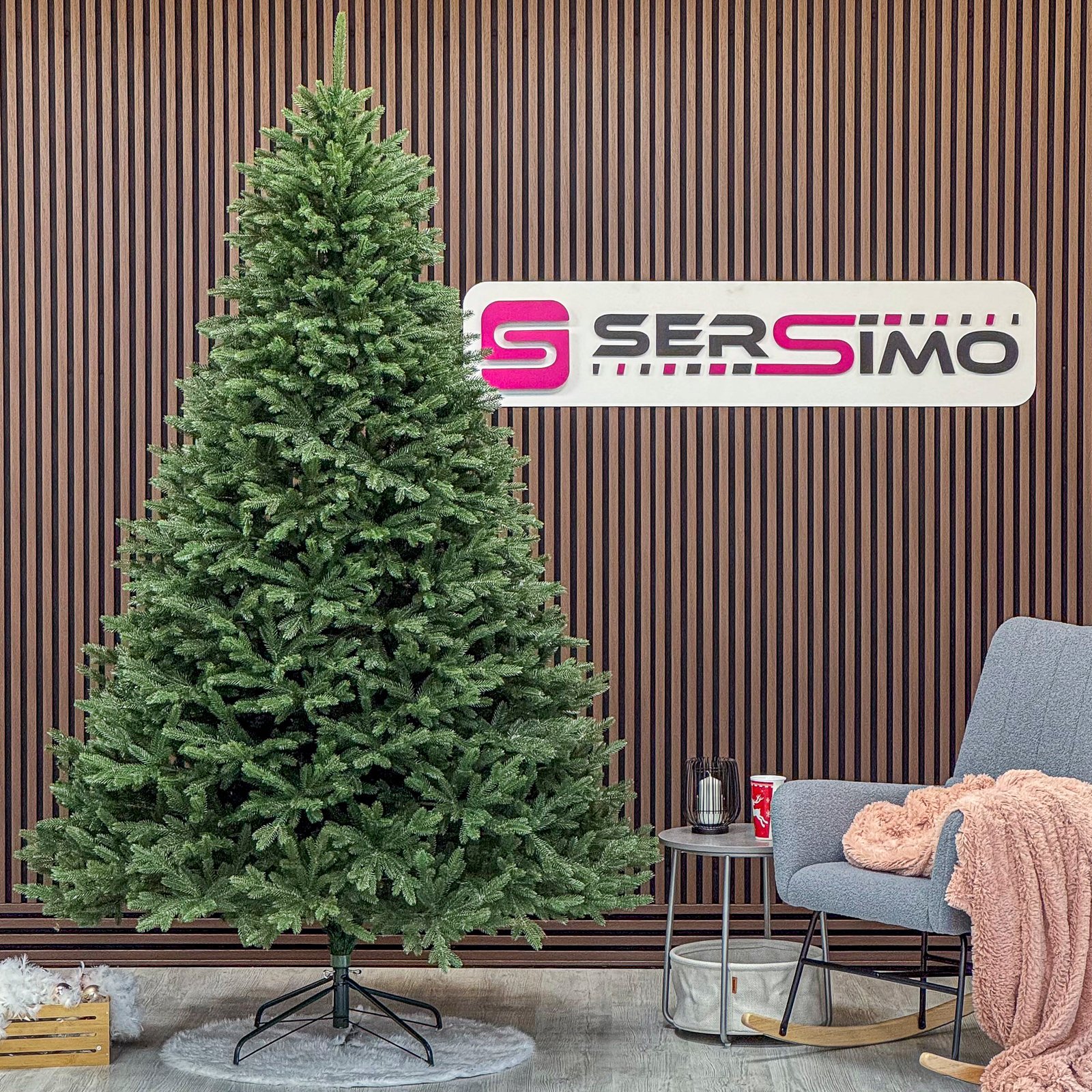 Imagine reala de prezentare pentru modelul Alpin Select, varianta 250 cm PARAMETRII: – Inaltimea totala a bradului (dimensiune masurata de la podea pana in varf, cu tot cu suport): 300 cm – Diametrul (latimea la baza in cel mai lat punct):  185 cm – Numarul total al ramificatiilor: 2169 dintre care:– Crengute 2D, material PVC: -– Crengute 3D, material PE: 2169– Suport inclus: metal– Zapada: NU– Alte decoratiuni: –– Greutate (fara ambalaj): 38.0 kg– Dimensiune ambalaj carton: 40 x 40 x 140 cm si 35 x 35 x 120 cm BRAD DE CRACIUN UNIC PENTRU CRACIUN UNIC Ce poate fi mai fermecator decat atmosfera unica a Craciunului? Si probabil ca niciunul dintre noi nu se indoieste ca un brad splendid impodobit este cel mai important element care construieste aceasta atmosfera magica de Craciun. La urma urmei, ritualul anual al impodobirii in familie a bradului de Craciun este unul dintre cele mai de neuitat momente, evocand multe amintiri frumoase. Bradul de Craciun prezentat va reflecta atmosfera minunata a Craciunului intr-un mod unic, si in acelasi timp atat de cunoscut si de indragit, subliniindu-i caldura si atmosfera de familie. DESCOPERA AVANTAJELE POMULUI NOSTRU DE CRACIUN – manopera precisa, imbinand soliditatea cu eleganta– densitate mare de ramuri si ace– distributie uniforma a acelor pe toata ramura – fara goluri– spatiu liber sub etajul inferior pentru cadouri– posibilitate de modelare a crengutelor in mai multe moduri– varietatea si realismul capetelor de crenguta– culoarea acelor imitand perfect acele naturale– diferentierea ramurilor – in functie de nivelul de inaltime– grosimea si durabilitatea firelor– fiabilitatea intregii structuri – arborele este aproape imposibil de distins de brazii naturali Cu bradul Christmas Deluxe by Sersimo® – un element inseparabil al Craciunului – veti petrece aceasta perioada magica de iarna intr-o aura de bucurie si caldura. Ganditi-va doar cat de frumos vor arata decoratiunile – stralucitoare, presarate cu sclipici, incalzind interiorul. Chiar si oamenii care nu impartasesc entuziasmul de Craciun recunosc ca un brad de Craciun impodobit frumos creeaza o atmosfera aparte. Cel mai mare avantaj al bradului nostru de Craciun este numarul mare de ramuri dens aranjate. Datorita densitatii si elegantei sale captivante, nu necesita prezenta a numeroase decoratiuni, fiind cu adevarat un decor grozav al oricarui interior! Etajul cel mai de jos al pomului de Craciun este la inaltimea potrivita, astfel incat sa puteti pune cu usurinta cadourile de Craciun sub el.Crengile pot fi indoite cu usurinta in diferite directii pentru a modela diferitele ramuri ale pomului si a le da forme diferite. Crengutele individuale au finaluri realiste si variate, iar niciuna nu este taiata intr-un mod artificial si inestetic. Culoarea lor intr-un mod extrem de realist imita culoarea reala a coniferelor si nu se estompeaza in timp. Sarma ascunsa cu grija nu se vede prin ace si, in acelasi timp, este suficient de groasa si rezistenta pentru ca bradul sa va serveasca ani de zile! Ace din folie PVC, puternice si durabile, sunt in acelasi timp extrem de placute la atingere. Deoarece bradul de Craciun – spre deosebire de copacii adevarati – nu ii pierde, nu va fi nevoie sa aspirati camera in mod regulat. Mai mult decat atat, acele sunt distribuite uniform pe toata lungimea ramurii, garantand astfel un efect vizual de densitate, fara goluri. https://youtube.com/shorts/zsVyUqXssI0