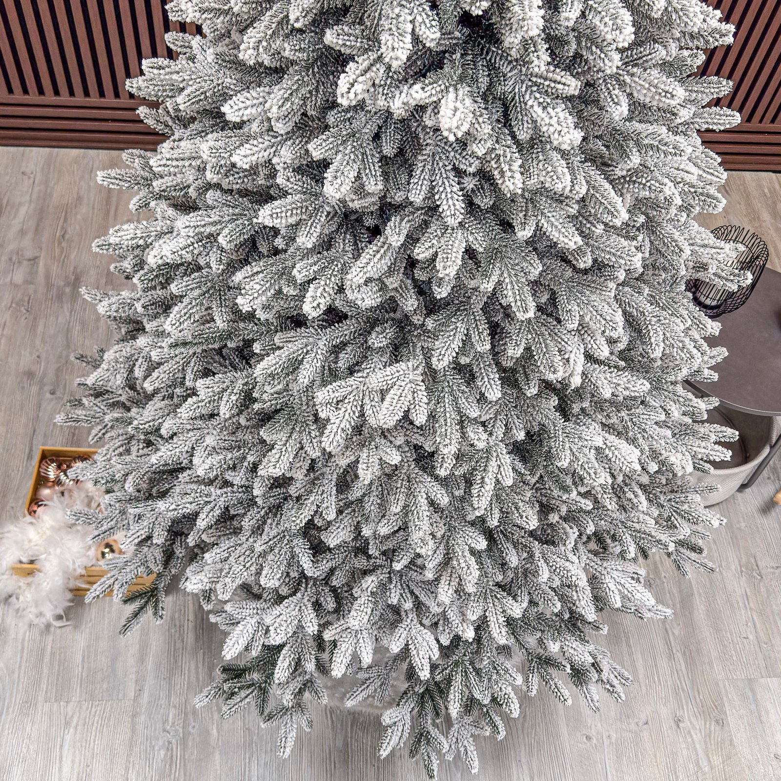 Imagine reala de prezentare pentru modelul Alpin Select nins, varianta 210cm PARAMETRII: – Inaltimea totala a bradului (dimensiune masurata de la podea pana in varf, cu tot cu suport): 210cm – Diametrul (latimea la baza in cel mai lat punct): 140cm – Numarul total al ramificatiilor: 833 dintre care:– Crengute 2D, material PVC: -– Crengute 3D, material PE: 833– Suport inclus: metal– Zapada: DA– Alte decoratiuni: –– Greutate (fara ambalaj): 15.4kg– Dimensiune ambalaj carton: 35 x 35 x 120cm BRAD DE CRACIUN UNIC PENTRU CRACIUN UNIC Ce poate fi mai fermecator decat atmosfera unica a Craciunului? Si probabil ca niciunul dintre noi nu se indoieste ca un brad splendid impodobit este cel mai important element care construieste aceasta atmosfera magica de Craciun. La urma urmei, ritualul anual al impodobirii in familie a bradului de Craciun este unul dintre cele mai de neuitat momente, evocand multe amintiri frumoase. Bradul de Craciun prezentat va reflecta atmosfera minunata a Craciunului intr-un mod unic, si in acelasi timp atat de cunoscut si de indragit, subliniindu-i caldura si atmosfera de familie. DESCOPERA AVANTAJELE POMULUI NOSTRU DE CRACIUN – manopera precisa, imbinand soliditatea cu eleganta– densitate mare de ramuri si ace– distributie uniforma a acelor pe toata ramura – fara goluri– spatiu liber sub etajul inferior pentru cadouri– posibilitate de modelare a crengutelor in mai multe moduri– varietatea si realismul capetelor de crenguta– culoarea acelor imitand perfect acele naturale– diferentierea ramurilor – in functie de nivelul de inaltime– grosimea si durabilitatea firelor– fiabilitatea intregii structuri – arborele este aproape imposibil de distins de brazii naturali Cu bradul Christmas Deluxe by Sersimo® – un element inseparabil al Craciunului – veti petrece aceasta perioada magica de iarna intr-o aura de bucurie si caldura. Ganditi-va doar cat de frumos vor arata decoratiunile – stralucitoare, presarate cu sclipici, incalzind interiorul. Chiar si oamenii care nu impartasesc entuziasmul de Craciun recunosc ca un brad de Craciun impodobit frumos creeaza o atmosfera aparte. Cel mai mare avantaj al bradului nostru de Craciun este numarul mare de ramuri dens aranjate. Datorita densitatii si elegantei sale captivante, nu necesita prezenta a numeroase decoratiuni, fiind cu adevarat un decor grozav al oricarui interior! Etajul cel mai de jos al pomului de Craciun este la inaltimea potrivita, astfel incat sa puteti pune cu usurinta cadourile de Craciun sub el.Crengile pot fi indoite cu usurinta in diferite directii pentru a modela diferitele ramuri ale pomului si a le da forme diferite. Crengutele individuale au finaluri realiste si variate, iar niciuna nu este taiata intr-un mod artificial si inestetic. Culoarea lor intr-un mod extrem de realist imita culoarea reala a coniferelor si nu se estompeaza in timp. Sarma ascunsa cu grija nu se vede prin ace si, in acelasi timp, este suficient de groasa si rezistenta pentru ca bradul sa va serveasca ani de zile! Ace din folie PVC, puternice si durabile, sunt in acelasi timp extrem de placute la atingere. Deoarece bradul de Craciun – spre deosebire de copacii adevarati – nu ii pierde, nu va fi nevoie sa aspirati camera in mod regulat. Mai mult decat atat, acele sunt distribuite uniform pe toata lungimea ramurii, garantand astfel un efect vizual de densitate, fara goluri.