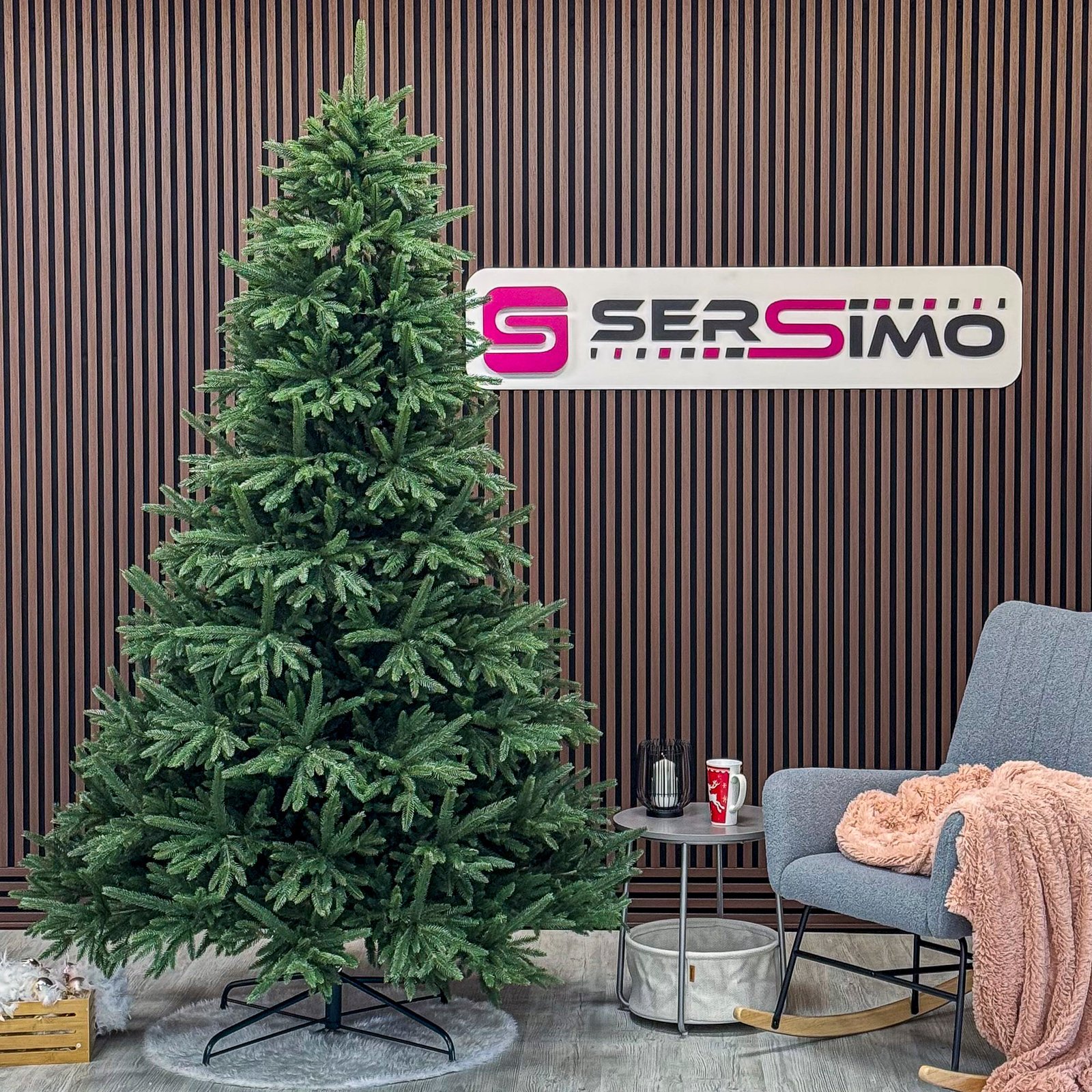 Imagine reala de prezentare pentru modelul Alpine, verde, integral 3D, 250 cm PARAMETRII: – Inaltimea totala a bradului (dimensiune masurata de la podea pana in varf, cu tot cu suport): 250 cm – Diametrul (latimea la baza in cel mai lat punct): 145 cm – Numarul total al ramificatiilor: 1812 dintre care:– Crengute 2D, material PVC: -– Crengute 3D, material PE: 1812– Suport inclus: metal– Zapada: NU– Alte decoratiuni: -– Greutate (fara ambalaj): 24 kg– Dimensiune ambalaj carton: 50 x 50 x 118 cm– Sistem instalare: crengi atasate de tulpina BRAD DE CRACIUN UNIC PENTRU CRACIUN UNIC Ce poate fi mai fermecator decat atmosfera unica a Craciunului? Si probabil ca niciunul dintre noi nu se indoieste ca un brad splendid impodobit este cel mai important element care construieste aceasta atmosfera magica de Craciun. La urma urmei, ritualul anual al impodobirii in familie a bradului de Craciun este unul dintre cele mai de neuitat momente, evocand multe amintiri frumoase. Bradul de Craciun prezentat va reflecta atmosfera minunata a Craciunului intr-un mod unic, si in acelasi timp atat de cunoscut si de indragit, subliniindu-i caldura si atmosfera de familie. DESCOPERA AVANTAJELE POMULUI NOSTRU DE CRACIUN – manopera precisa, imbinand soliditatea cu eleganta– densitate mare de ramuri si ace– distributie uniforma a acelor pe toata ramura – fara goluri– spatiu liber sub etajul inferior pentru cadouri– posibilitate de modelare a crengutelor in mai multe moduri– varietatea si realismul capetelor de crenguta– culoarea acelor imitand perfect acele naturale– diferentierea ramurilor – in functie de nivelul de inaltime– grosimea si durabilitatea firelor– fiabilitatea intregii structuri – arborele este aproape imposibil de distins de brazii naturali Cu bradul Christmas Deluxe by Sersimo® – un element inseparabil al Craciunului – veti petrece aceasta perioada magica de iarna intr-o aura de bucurie si caldura. Ganditi-va doar cat de frumos vor arata decoratiunile – stralucitoare, presarate cu sclipici, incalzind interiorul. Chiar si oamenii care nu impartasesc entuziasmul de Craciun recunosc ca un brad de Craciun impodobit frumos creeaza o atmosfera aparte. Cel mai mare avantaj al bradului nostru de Craciun este numarul mare de ramuri dens aranjate. Datorita densitatii si elegantei sale captivante, nu necesita prezenta a numeroase decoratiuni, fiind cu adevarat un decor grozav al oricarui interior! Etajul cel mai de jos al pomului de Craciun este la inaltimea potrivita, astfel incat sa puteti pune cu usurinta cadourile de Craciun sub el.Crengile pot fi indoite cu usurinta in diferite directii pentru a modela diferitele ramuri ale pomului si a le da forme diferite. Crengutele individuale au finaluri realiste si variate, iar niciuna nu este taiata intr-un mod artificial si inestetic. Culoarea lor intr-un mod extrem de realist imita culoarea reala a coniferelor si nu se estompeaza in timp. Sarma ascunsa cu grija nu se vede prin ace si, in acelasi timp, este suficient de groasa si rezistenta pentru ca bradul sa va serveasca ani de zile! Ace din folie PVC, puternice si durabile, sunt in acelasi timp extrem de placute la atingere. Deoarece bradul de Craciun – spre deosebire de copacii adevarati – nu ii pierde, nu va fi nevoie sa aspirati camera in mod regulat. Mai mult decat atat, acele sunt distribuite uniform pe toata lungimea ramurii, garantand astfel un efect vizual de densitate, fara goluri.