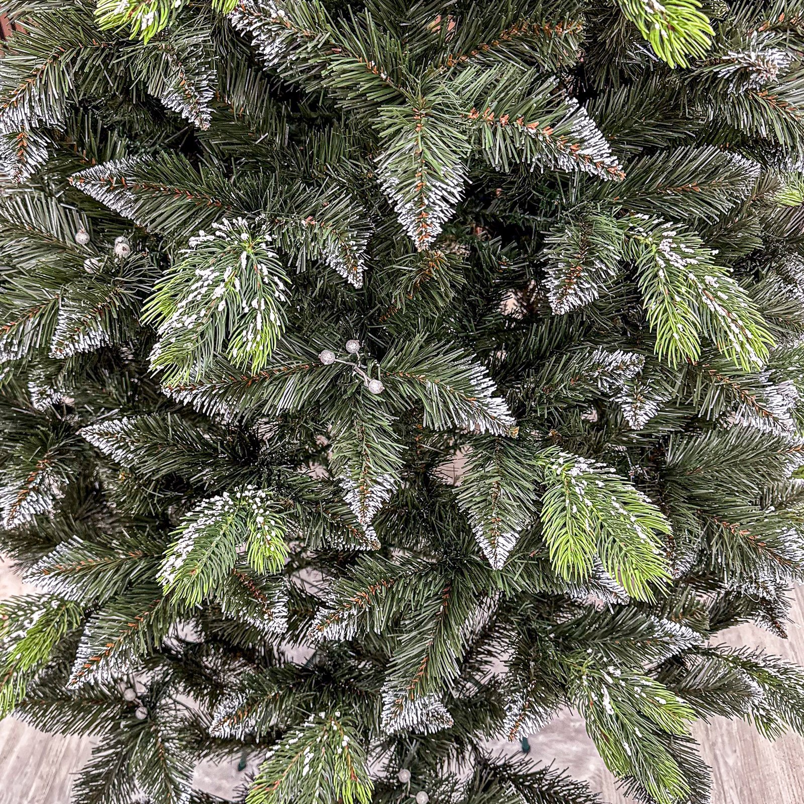 Imagine reala de prezentare pentru modelul Diamant, varianta 250 cm. Acesti brazi au un aspect ultra-realist si sunt greu de distins in comparatie cu cei naturali. Ramurile lor sunt dens stratificate si mentin toate decoratiunile de Craciun la inaltime. Ramurile arata foarte bine chiar si fara decoratiuni, sunt realizati din materiale calitative si ating cele inalte standarde de siguranta ale Uniunii Europene.Ramurile ramificate permit modelarea si impodobirea acestuia dupa preferintele fiecaruia. Pomii pot fi rapid ansamblati si dezansamblati, sunt usor de intretinut si sigur va vor face casa sa radieze de frumusete si a spirit de Craciun.Bradul este format din crengi care pot fi modelate si aranjate. Se poate monta in cca. 30 minute si este practic, ecologic si durabil. Este un brad foarte bogat, cu ramuri ce imita foarte bine bradul natural atat prin culoare cat si prin forma/textura. Ramurile se pot strange foarte usor in jurul tulpinii, fiind compact si usor de depozitat. Suportul bradului este inclus Inaltimea totala a bradului (dimensiune masurata de la podea pana in varf, cu tot cu suport): 250cm Diametrul (latimea la baza in cel mai lat punct): 158cm Numarul total al ramificatiilor: 897 dintre care: Crengute 2D, material PVC: 822 Crengute 3D, material PE: 75 Suport inclus: plastic Zapada: DA Alte decoratiuni: merisoare albe Greutate (fara ambalaj): 13.7kg Dimensiune ambalaj carton: 32 x 29 x 118cm Design exclusiv realizat de SERSIMO Market, fabricat in Ucraina