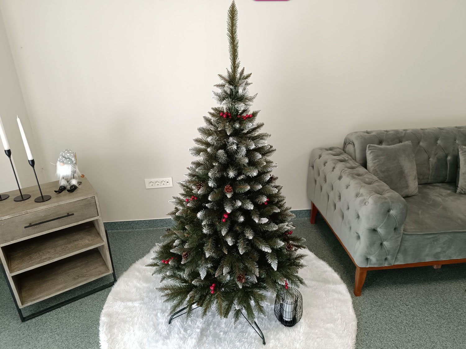 Imagine reala de prezentare pentru modelul Frasin de Munte, varianta 150cm PARAMETRII: – Inaltimea totala a bradului (dimensiune masurata de la podea pana in varf, cu tot cu suport): 150cm – Diametrul (latimea la baza in cel mai lat punct): 95cm – Suport inclus: metal– Zapada: DA– Alte decoratiuni: merisoare rosii– Greutate (fara ambalaj): 5.7kg BRAD DE CRACIUN UNIC PENTRU CRACIUN UNIC Ce poate fi mai fermecator decat atmosfera unica a Craciunului? Si probabil ca niciunul dintre noi nu se indoieste ca un brad splendid impodobit este cel mai important element care construieste aceasta atmosfera magica de Craciun. La urma urmei, ritualul anual al impodobirii in familie a bradului de Craciun este unul dintre cele mai de neuitat momente, evocand multe amintiri frumoase. Bradul de Craciun prezentat va reflecta atmosfera minunata a Craciunului intr-un mod unic, si in acelasi timp atat de cunoscut si de indragit, subliniindu-i caldura si atmosfera de familie. DESCOPERA AVANTAJELE POMULUI NOSTRU DE CRACIUN – manopera precisa, imbinand soliditatea cu eleganta– densitate mare de ramuri si ace– distributie uniforma a acelor pe toata ramura – fara goluri– spatiu liber sub etajul inferior pentru cadouri– posibilitate de modelare a crengutelor in mai multe moduri– varietatea si realismul capetelor de crenguta– culoarea acelor imitand perfect acele naturale– diferentierea ramurilor – in functie de nivelul de inaltime– grosimea si durabilitatea firelor– fiabilitatea intregii structuri – arborele este aproape imposibil de distins de brazii naturali Cu bradul Christmas Deluxe by Sersimo® – un element inseparabil al Craciunului – veti petrece aceasta perioada magica de iarna intr-o aura de bucurie si caldura. Ganditi-va doar cat de frumos vor arata decoratiunile – stralucitoare, presarate cu sclipici, incalzind interiorul. Chiar si oamenii care nu impartasesc entuziasmul de Craciun recunosc ca un brad de Craciun impodobit frumos creeaza o atmosfera aparte. Cel mai mare avantaj al bradului nostru de Craciun este numarul mare de ramuri dens aranjate. Datorita densitatii si elegantei sale captivante, nu necesita prezenta a numeroase decoratiuni, fiind cu adevarat un decor grozav al oricarui interior! Etajul cel mai de jos al pomului de Craciun este la inaltimea potrivita, astfel incat sa puteti pune cu usurinta cadourile de Craciun sub el.Crengile pot fi indoite cu usurinta in diferite directii pentru a modela diferitele ramuri ale pomului si a le da forme diferite. Crengutele individuale au finaluri realiste si variate, iar niciuna nu este taiata intr-un mod artificial si inestetic. Culoarea lor intr-un mod extrem de realist imita culoarea reala a coniferelor si nu se estompeaza in timp. Sarma ascunsa cu grija nu se vede prin ace si, in acelasi timp, este suficient de groasa si rezistenta pentru ca bradul sa va serveasca ani de zile! Ace din folie PVC, puternice si durabile, sunt in acelasi timp extrem de placute la atingere. Deoarece bradul de Craciun – spre deosebire de copacii adevarati – nu ii pierde, nu va fi nevoie sa aspirati camera in mod regulat. Mai mult decat atat, acele sunt distribuite uniform pe toata lungimea ramurii, garantand astfel un efect vizual de densitate, fara goluri.https://youtube.com/shorts/GXOsLrTzdWg
