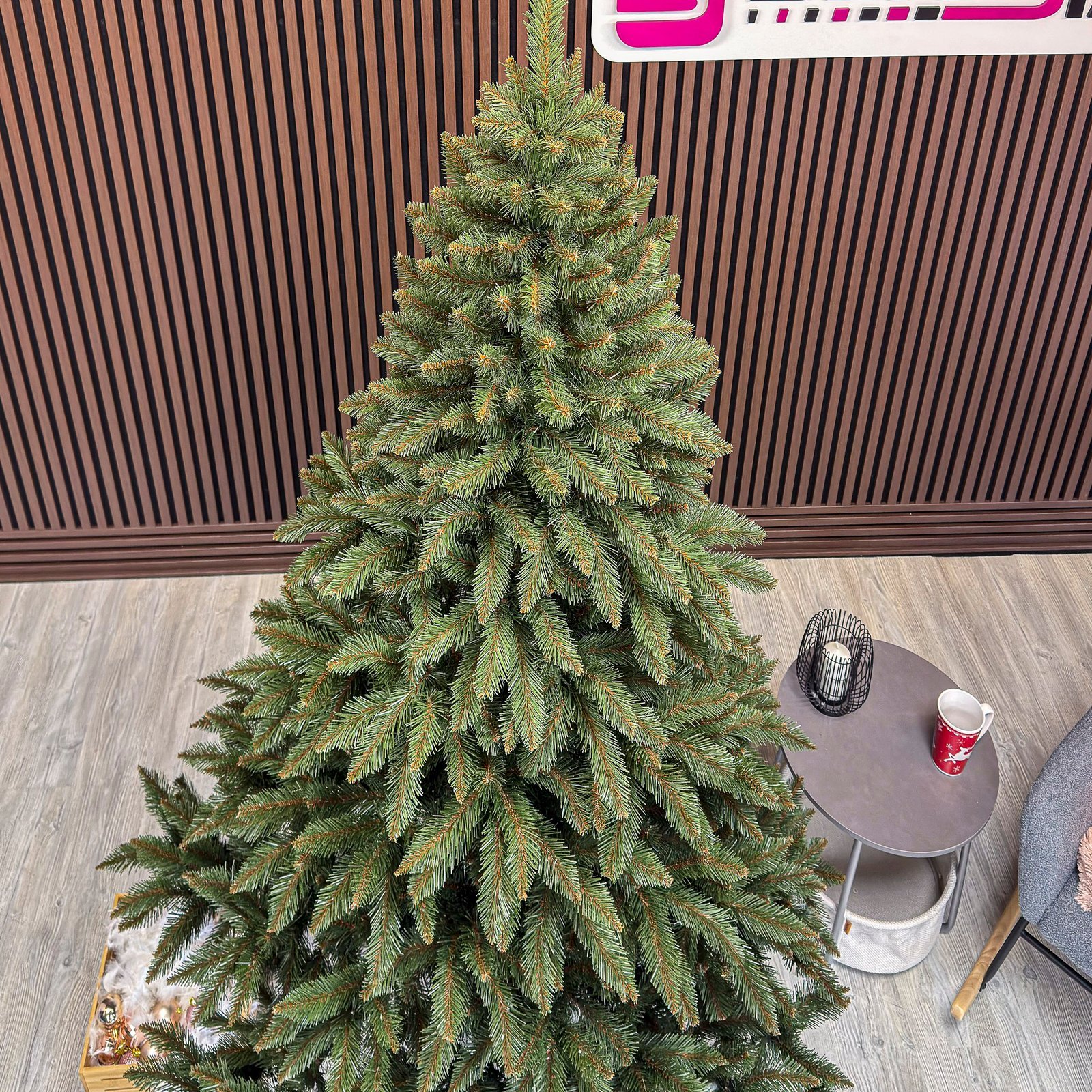 Brad artificial Deluxe Christmas 240cm cu suport metalic inclus Acesti brazi au un aspect ultra-realist si sunt greu de distins in comparatie cu cei naturali. Ramurile lor sunt dens stratificate si mentin toate decoratiunile de Craciun la inaltime. Ramurile arata foarte bine chiar si fara decoratiuni, sunt realizati din materiale calitative si ating cele inalte standarde de siguranta ale Uniunii Europene.Dispune de ramuri bogate de culoare verde inchis, foarte apropiat de culoarea naturala a brazilor. Ramurile ramificate permit modelarea si impodobirea acestuia dupa preferintele fiecaruia. Pomii pot fi rapid ansamblati si dezansamblati, sunt usor de intretinut si sigur va vor face casa sa radieze de frumusete si a spirit de Craciun. Inaltimea totala a bradului, impreuna cu suportul este de 240 cm. Diametrul aproximativ este de 150cm (dar poate diferi cu plus/minus 10cm in functie de modul in care sunt arantaje ramurile)Bradul este format din crengi care pot fi modelate si aranjate. Se poate monta in cca. 45 minute si este practic, ecologic si durabil. Este un brad foarte bogat, cu ramuri ce imita foarte bine bradul natural atat prin culoare cat si prin forma/textura. Inaltimea totala a bradului, impreuna cu suportul este de 240cm. Bradul este format din crengi care pot fi modelate si aranjate. Modul de aranjare poate fi vazut in pozele atasate. Este un brad foarte bogat Ramurile se pot strange foarte usor in jurul tulpinii, fiind compact si usor de depozitat. Include 2 tipuri de suport: 1 suport metalic, 1 suport de plastic https://sersimo.ro/wp-content/uploads/2021/10/90240.mp4