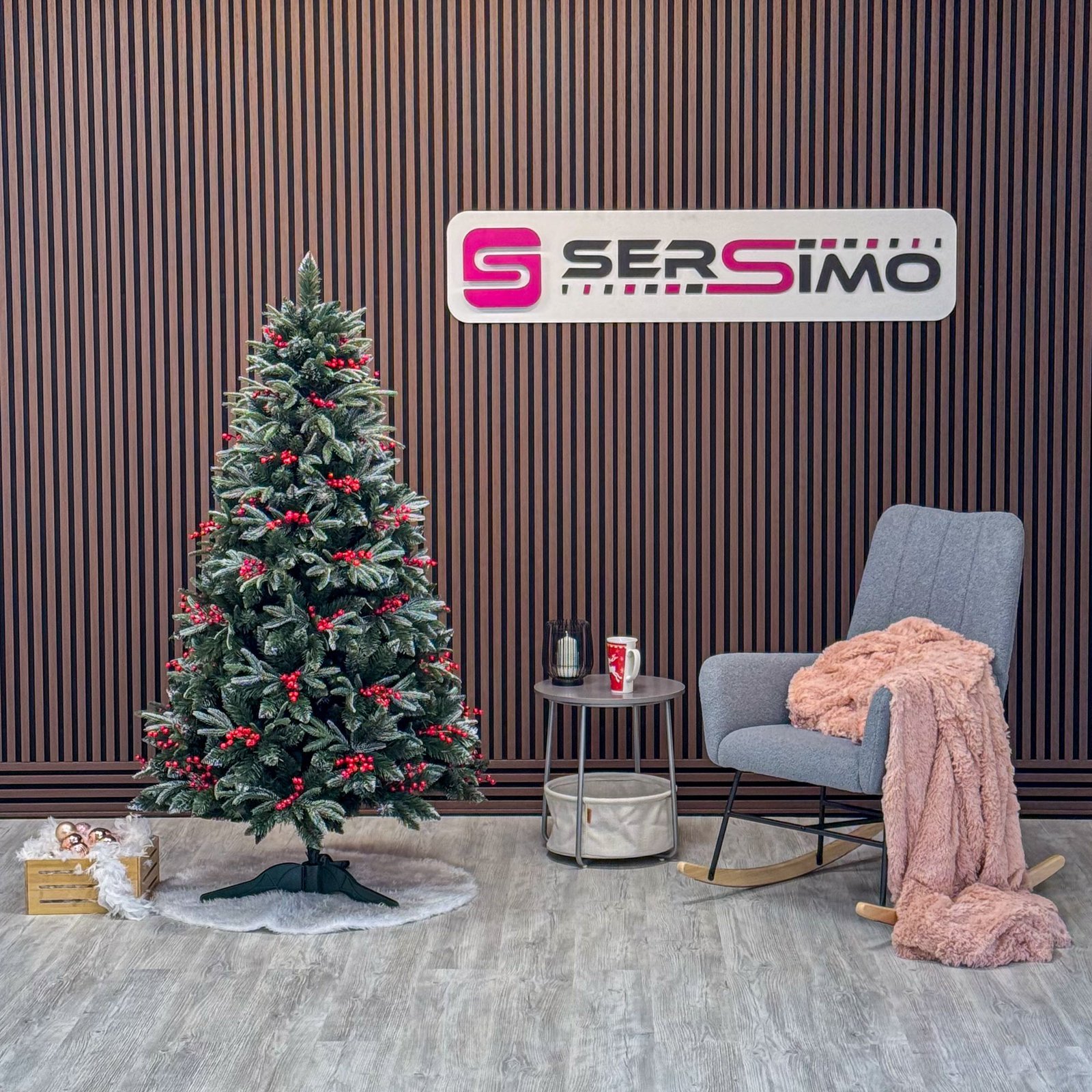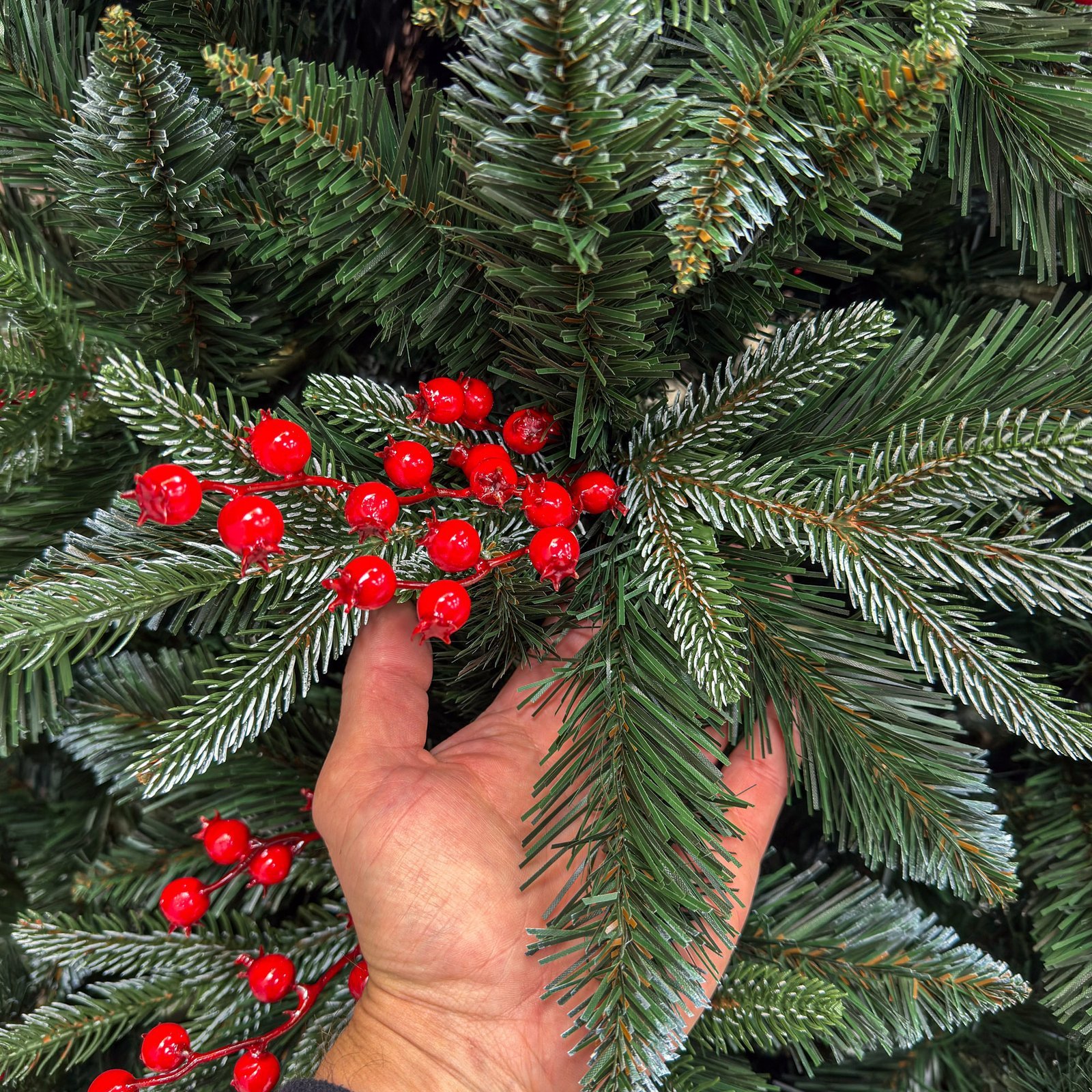 Brad artificial Sersimo, Miahelene Elite, verde nins cu merisoare, mix 2D+3D, 180 cm