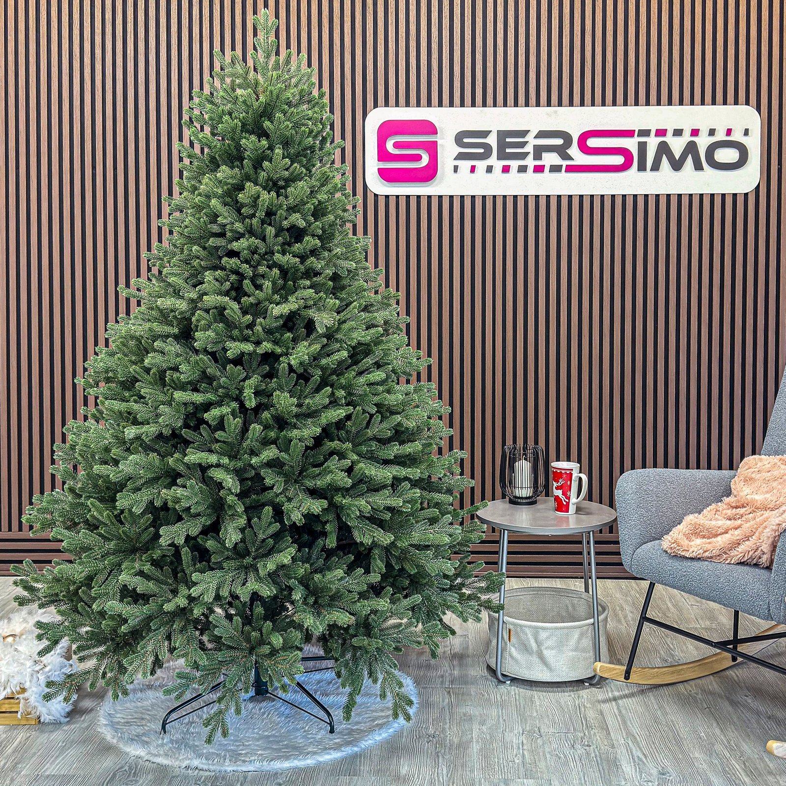 Imagine reala de prezentare pentru modelul Sionne Elite, verde, integral 3D, 200 cm PARAMETRII: – Inaltimea totala a bradului (dimensiune masurata de la podea pana in varf, cu tot cu suport): 200 cm – Diametrul (latimea la baza in cel mai lat punct):  150 cm – Numarul total al ramificatiilor: 1745 dintre care:– Crengute 2D, material PVC: -– Crengute 3D, material PE: 1745– Suport inclus: metal– Zapada: NU– Alte decoratiuni: -– Greutate (fara ambalaj): 24.7 kg– Dimensiune ambalaj carton: 60 x 40 x 120 cm– Sistem instalare: umbrela cu balamale BRAD DE CRACIUN UNIC PENTRU CRACIUN UNIC Ce poate fi mai fermecator decat atmosfera unica a Craciunului? Si probabil ca niciunul dintre noi nu se indoieste ca un brad splendid impodobit este cel mai important element care construieste aceasta atmosfera magica de Craciun. La urma urmei, ritualul anual al impodobirii in familie a bradului de Craciun este unul dintre cele mai de neuitat momente, evocand multe amintiri frumoase. Bradul de Craciun prezentat va reflecta atmosfera minunata a Craciunului intr-un mod unic, si in acelasi timp atat de cunoscut si de indragit, subliniindu-i caldura si atmosfera de familie. DESCOPERA AVANTAJELE POMULUI NOSTRU DE CRACIUN – manopera precisa, imbinand soliditatea cu eleganta– densitate mare de ramuri si ace– distributie uniforma a acelor pe toata ramura – fara goluri– spatiu liber sub etajul inferior pentru cadouri– posibilitate de modelare a crengutelor in mai multe moduri– varietatea si realismul capetelor de crenguta– culoarea acelor imitand perfect acele naturale– diferentierea ramurilor – in functie de nivelul de inaltime– grosimea si durabilitatea firelor– fiabilitatea intregii structuri – arborele este aproape imposibil de distins de brazii naturali Cu bradul Christmas Deluxe by Sersimo® – un element inseparabil al Craciunului – veti petrece aceasta perioada magica de iarna intr-o aura de bucurie si caldura. Ganditi-va doar cat de frumos vor arata decoratiunile – stralucitoare, presarate cu sclipici, incalzind interiorul. Chiar si oamenii care nu impartasesc entuziasmul de Craciun recunosc ca un brad de Craciun impodobit frumos creeaza o atmosfera aparte. Cel mai mare avantaj al bradului nostru de Craciun este numarul mare de ramuri dens aranjate. Datorita densitatii si elegantei sale captivante, nu necesita prezenta a numeroase decoratiuni, fiind cu adevarat un decor grozav al oricarui interior! Etajul cel mai de jos al pomului de Craciun este la inaltimea potrivita, astfel incat sa puteti pune cu usurinta cadourile de Craciun sub el.Crengile pot fi indoite cu usurinta in diferite directii pentru a modela diferitele ramuri ale pomului si a le da forme diferite. Crengutele individuale au finaluri realiste si variate, iar niciuna nu este taiata intr-un mod artificial si inestetic. Culoarea lor intr-un mod extrem de realist imita culoarea reala a coniferelor si nu se estompeaza in timp. Sarma ascunsa cu grija nu se vede prin ace si, in acelasi timp, este suficient de groasa si rezistenta pentru ca bradul sa va serveasca ani de zile! Ace din folie PVC, puternice si durabile, sunt in acelasi timp extrem de placute la atingere. Deoarece bradul de Craciun – spre deosebire de copacii adevarati – nu ii pierde, nu va fi nevoie sa aspirati camera in mod regulat. Mai mult decat atat, acele sunt distribuite uniform pe toata lungimea ramurii, garantand astfel un efect vizual de densitate, fara goluri.