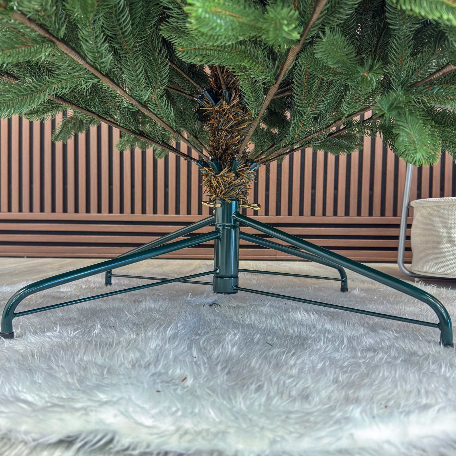 Imagine reala de prezentare pentru modelul Viorisse Elite, verde, integral 3D, 190 cm PARAMETRII: – Inaltimea totala a bradului (dimensiune masurata de la podea pana in varf, cu tot cu suport): 190 cm – Diametrul (latimea la baza in cel mai lat punct): 105 cm – Numarul total al ramificatiilor: 900 dintre care:– Crengute 2D, material PVC: -– Crengute 3D, material PE: 900– Suport inclus: metal– Zapada: NU– Alte decoratiuni: -– Greutate (fara ambalaj): 15 kg– Dimensiune ambalaj carton: 31 x 31 x 125 cm– Sistem instalare: umbrela cu balamale BRAD DE CRACIUN UNIC PENTRU CRACIUN UNIC Ce poate fi mai fermecator decat atmosfera unica a Craciunului? Si probabil ca niciunul dintre noi nu se indoieste ca un brad splendid impodobit este cel mai important element care construieste aceasta atmosfera magica de Craciun. La urma urmei, ritualul anual al impodobirii in familie a bradului de Craciun este unul dintre cele mai de neuitat momente, evocand multe amintiri frumoase. Bradul de Craciun prezentat va reflecta atmosfera minunata a Craciunului intr-un mod unic, si in acelasi timp atat de cunoscut si de indragit, subliniindu-i caldura si atmosfera de familie. DESCOPERA AVANTAJELE POMULUI NOSTRU DE CRACIUN – manopera precisa, imbinand soliditatea cu eleganta– densitate mare de ramuri si ace– distributie uniforma a acelor pe toata ramura – fara goluri– spatiu liber sub etajul inferior pentru cadouri– posibilitate de modelare a crengutelor in mai multe moduri– varietatea si realismul capetelor de crenguta– culoarea acelor imitand perfect acele naturale– diferentierea ramurilor – in functie de nivelul de inaltime– grosimea si durabilitatea firelor– fiabilitatea intregii structuri – arborele este aproape imposibil de distins de brazii naturali Cu bradul Christmas Deluxe by Sersimo® – un element inseparabil al Craciunului – veti petrece aceasta perioada magica de iarna intr-o aura de bucurie si caldura. Ganditi-va doar cat de frumos vor arata decoratiunile – stralucitoare, presarate cu sclipici, incalzind interiorul. Chiar si oamenii care nu impartasesc entuziasmul de Craciun recunosc ca un brad de Craciun impodobit frumos creeaza o atmosfera aparte. Cel mai mare avantaj al bradului nostru de Craciun este numarul mare de ramuri dens aranjate. Datorita densitatii si elegantei sale captivante, nu necesita prezenta a numeroase decoratiuni, fiind cu adevarat un decor grozav al oricarui interior! Etajul cel mai de jos al pomului de Craciun este la inaltimea potrivita, astfel incat sa puteti pune cu usurinta cadourile de Craciun sub el.Crengile pot fi indoite cu usurinta in diferite directii pentru a modela diferitele ramuri ale pomului si a le da forme diferite. Crengutele individuale au finaluri realiste si variate, iar niciuna nu este taiata intr-un mod artificial si inestetic. Culoarea lor intr-un mod extrem de realist imita culoarea reala a coniferelor si nu se estompeaza in timp. Sarma ascunsa cu grija nu se vede prin ace si, in acelasi timp, este suficient de groasa si rezistenta pentru ca bradul sa va serveasca ani de zile! Ace din folie PVC, puternice si durabile, sunt in acelasi timp extrem de placute la atingere. Deoarece bradul de Craciun – spre deosebire de copacii adevarati – nu ii pierde, nu va fi nevoie sa aspirati camera in mod regulat. Mai mult decat atat, acele sunt distribuite uniform pe toata lungimea ramurii, garantand astfel un efect vizual de densitate, fara goluri.
