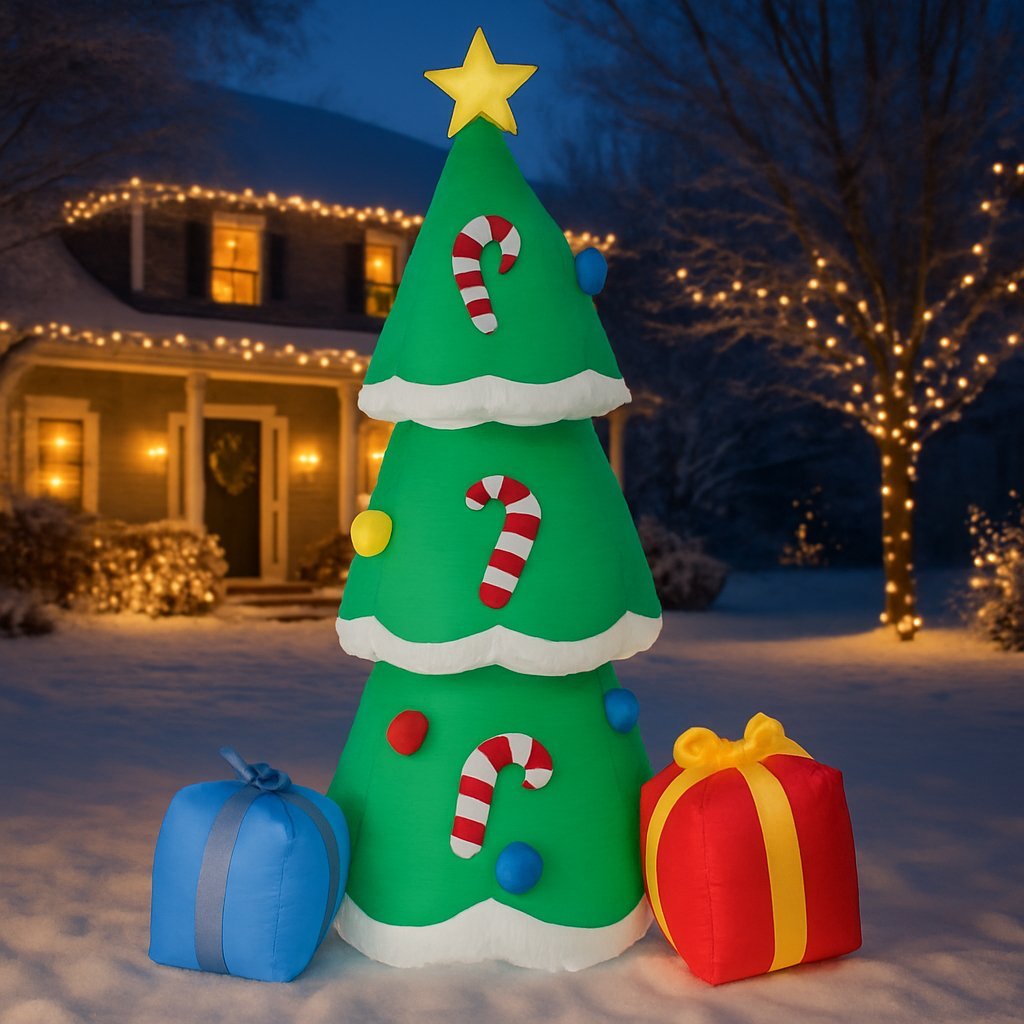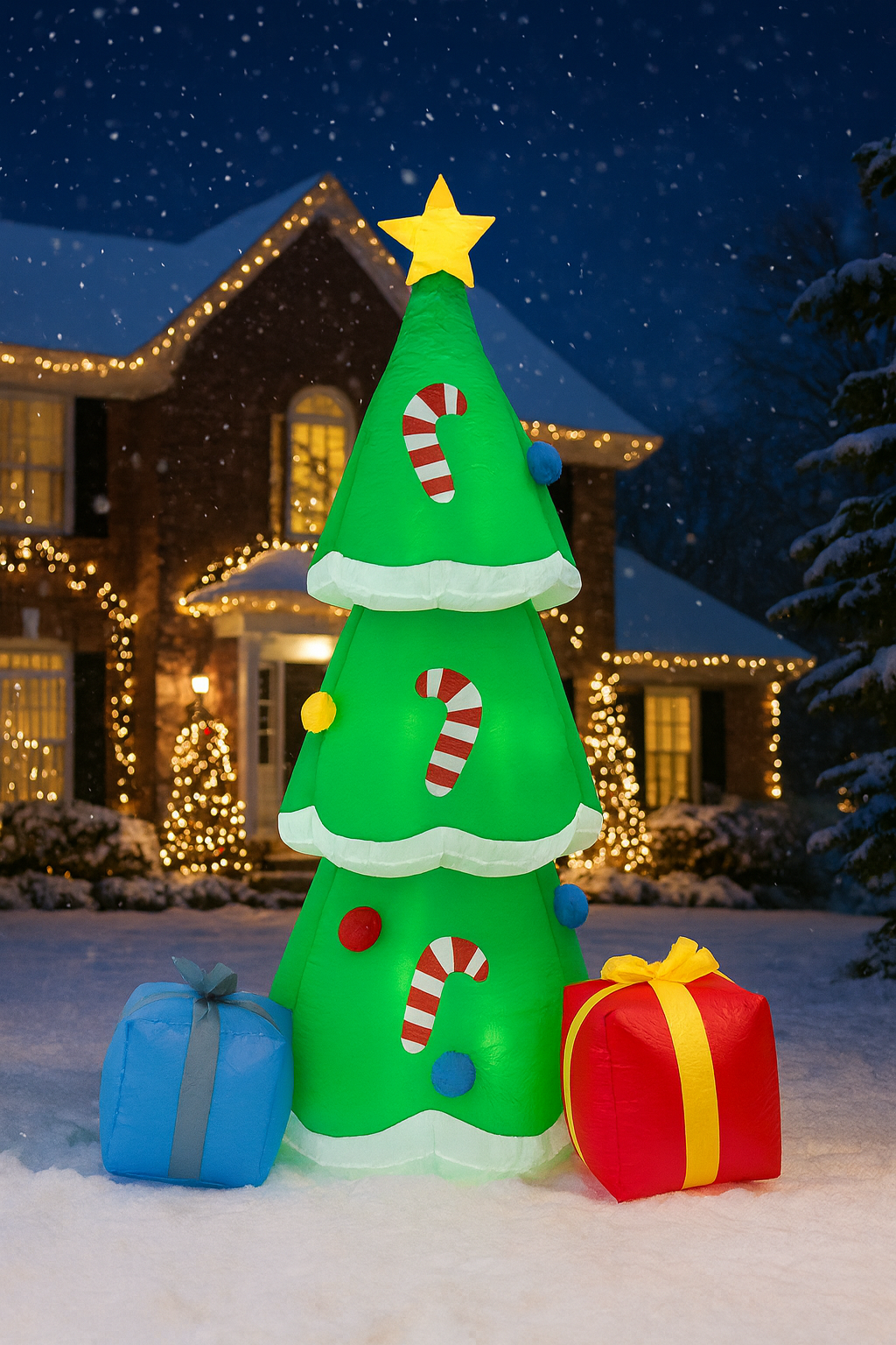 Specificatii tehnice Tip produs: Brad gonflabil cu LED Material: PVC rezistent la intemperii Inaltime: 180 cm Latime: 80 cm Adancime: 80 cm Iluminare: LED incorporat Sistem umflare: Compresor integrat Utilizare: Interior si exterior Accesorii incluse: Corzi de fixare si ancore Scurta descriere Brad gonflabil cu LED, perfect pentru decorul de sarbatori in casa, balcon sau gradina. Se monteaza rapid datorita compresorului integrat, iar materialul rezistent permite utilizarea in siguranta la exterior. Caracteristici principale Inaltime de 180 cm potrivita pentru interior si exterior Iluminare LED cu consum redus Compresor integrat pentru montare rapid Material PVC rezistent la intemperii Fixare stabila cu accesorii incluse Design festiv cu cadouri decorative