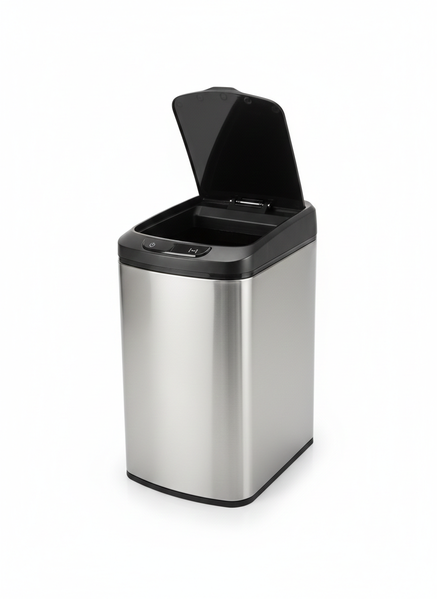 Cos de gunoi cu senzor automat Rovotec SD-804, Inox, 12L, deschidere cu senzor sau touch Cos de Gunoi Inteligent cu Senzor si Touch, 12L , Inox Premium Modernizeaza-ti locuinta cu noul cos de gunoi inteligent, conceput pentru a oferi un plus de igiena si confort. Cu un design minimalist si finisaj din inox, acesta se integreaza perfect in orice decor modern, de la bucatarii rafinate pana la spatii de birouri. Control Dual: Senzor si Touch Produsul ofera flexibilitate totala in utilizare datorita panoului de control frontal: Deschidere cu Senzor: Apropie mana de zona senzorului pentru o deschidere automata, complet fara atingere. Deschidere Manuala (Touch): Panoul include buton touch care permite deschiderea si inchiderea capacului printr-o simpla atingere. Caracteristici si Avantaje: Materiale de Calitate: Corp din otel inoxidabil cu grosime de 0.4 mm si capac din ABS negru rezistent. Igiena Sporita: Recipient interior detasabil din polipropilena (PP), care faciliteaza golirea si curatarea. Design Compact: Dimensiunile de 28 x 22 x 41 cm il fac ideal pentru spatii inguste sau pentru a fi plasat sub blatul de lucru. Alimentare Eficienta: Functioneaza cu 4 baterii tip AA, oferind o autonomie indelungata pentru utilizarea zilnica. Specificatii Tehnice: Capacitate 12 Litri Dimensiuni 28 x 22 x 41 cm Material Corp Inox (grosime 0.4 mm) Sistem Deschidere Senzor de miscare + Butoane Touch Accesorii Galeata interioara inclusa Baterii 4 x AA (nu sunt incluse)