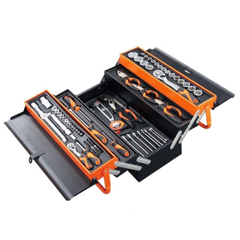 Un set complet de scule intr-o cutie din otel cu cinci sine.