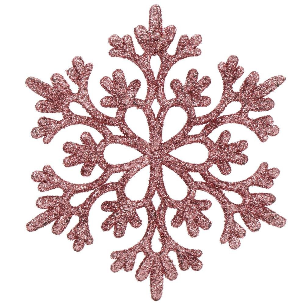 Decoratiune brad fulg de zapada, set 12 bucati, 10cm, roz