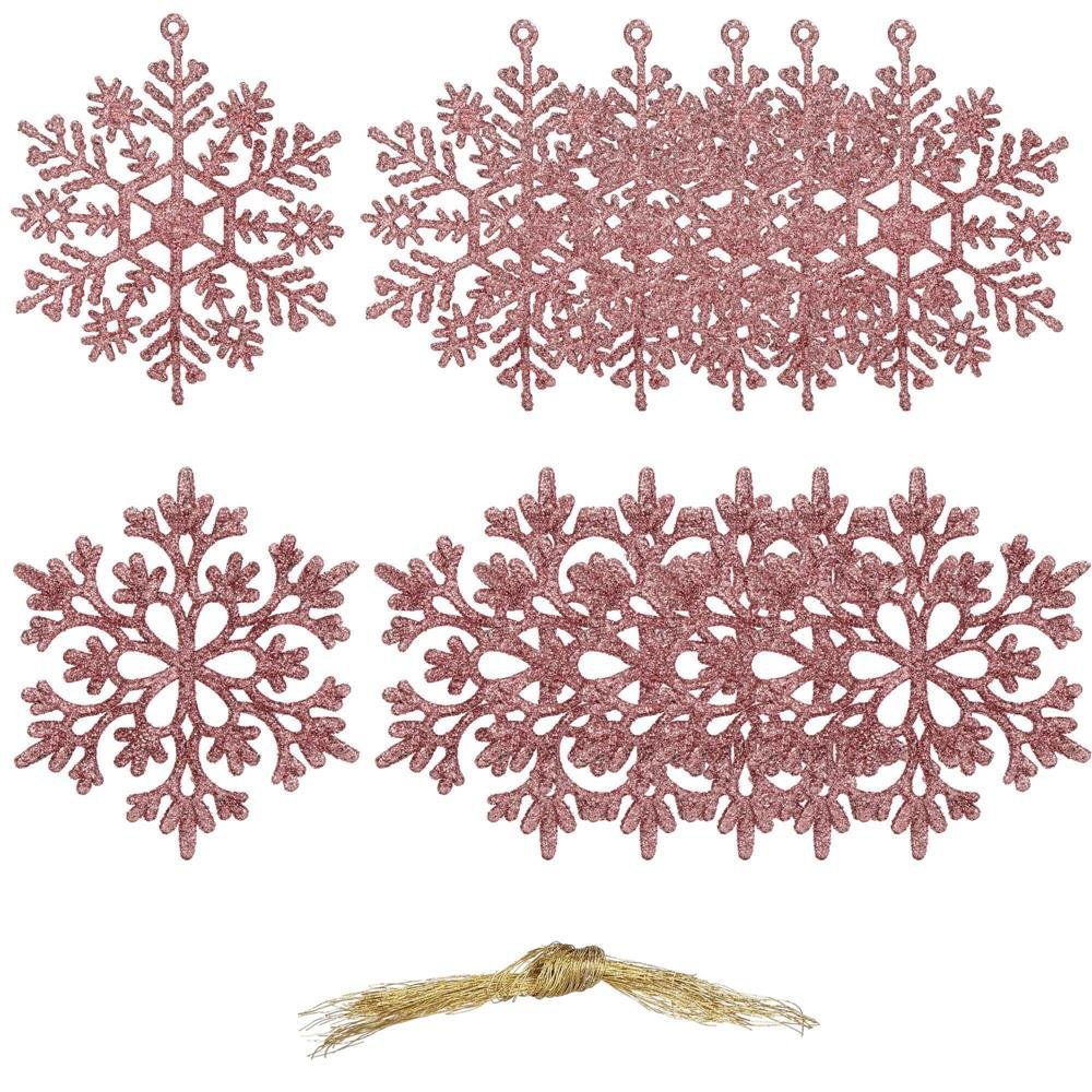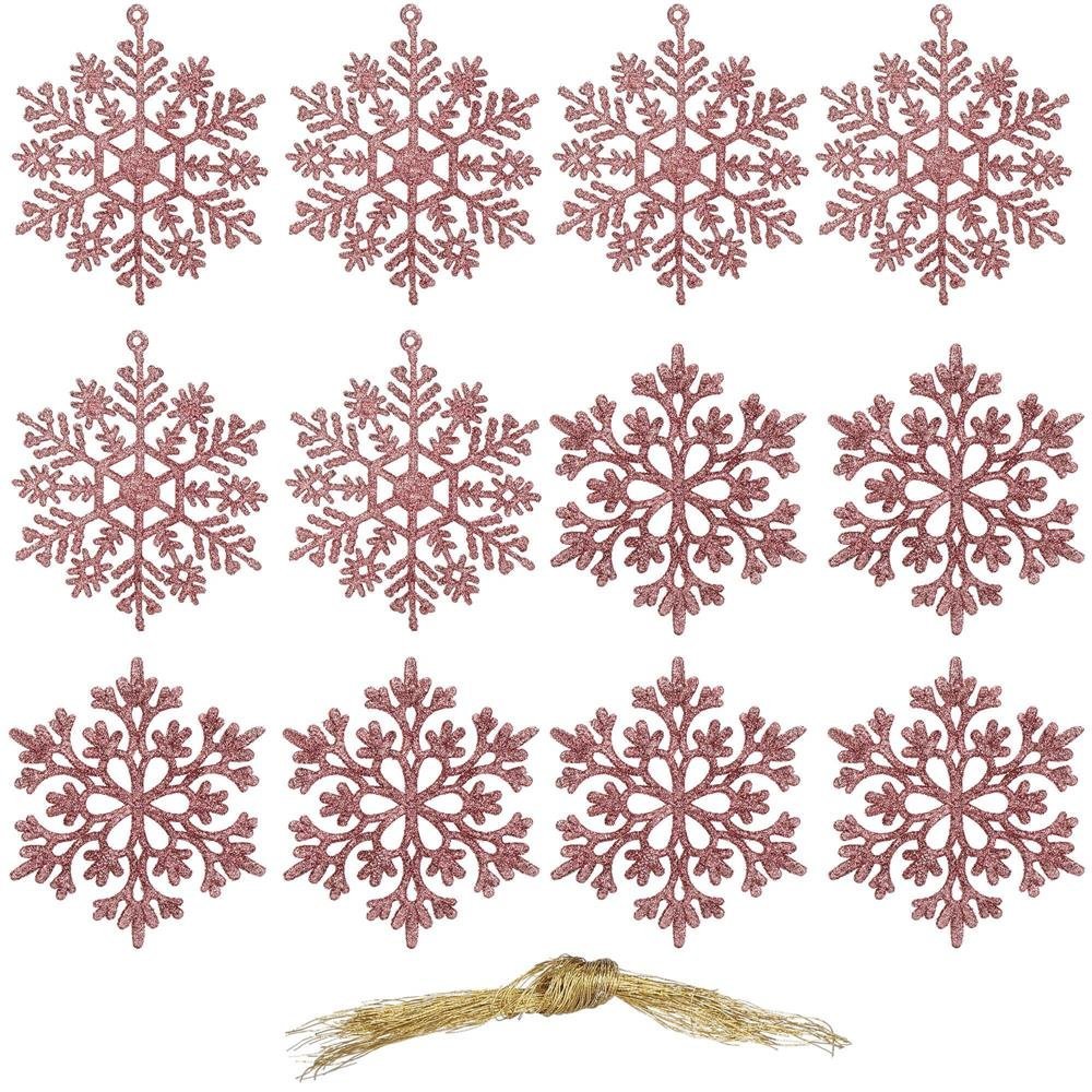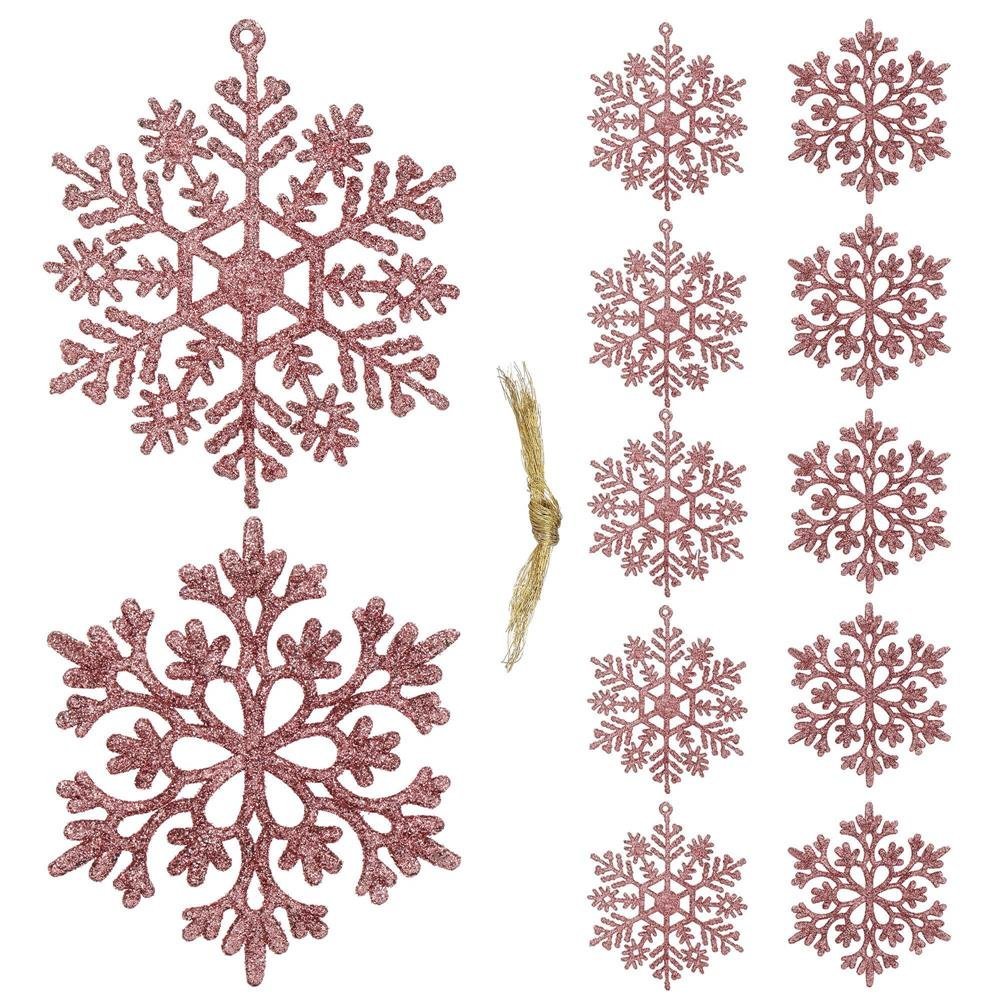 Specification: Decoratiune brad fulg de zapada, set 12 bucati, 10cm, roz