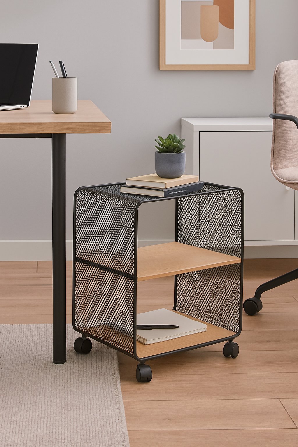 Specificatii tehnice Marca: 5Five Culoare: Negru Material: MDF E1 si otel Dimensiuni produs: 43,5 x 28 x 52 cm Scurta descriere Aceasta etajera cu 2 compartimente imbina estetica industriala cu functionalitatea. Structura robusta din metal si rafturile din MDF o fac ideala pentru depozitare sau decor in living, birou sau baie. Se monteaza usor si se integreaza perfect in spatii moderne. Caracteristici principale 2 compartimente spatioase Rafturi din MDF cu finisaj elegant Cadru metalic rezistent Design industrial modern Montaj simplu si rapid