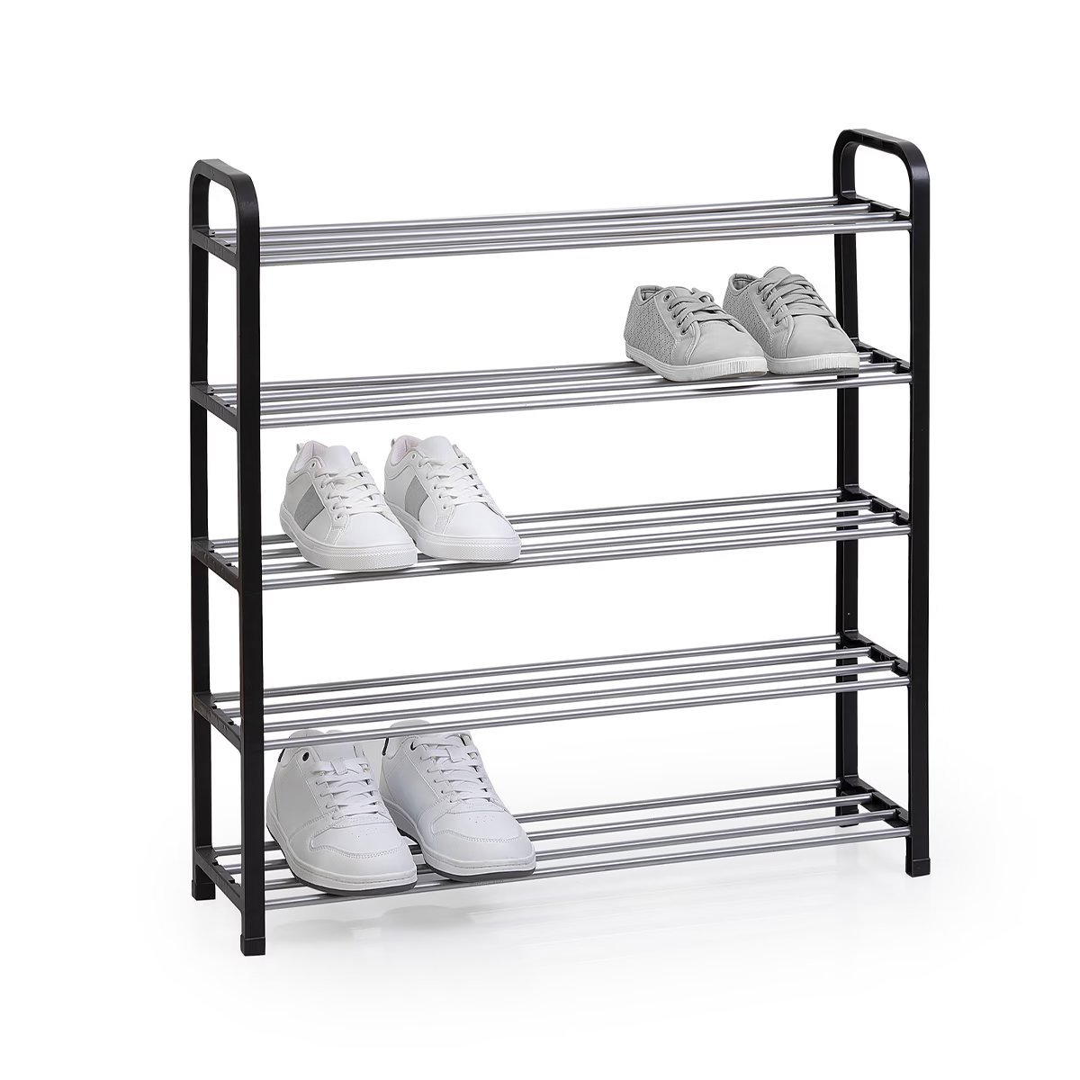 Etajera pantofi 5Five din metal si plastic, 4 niveluri pentru 16 perechi, 70x19x76 cm, negru