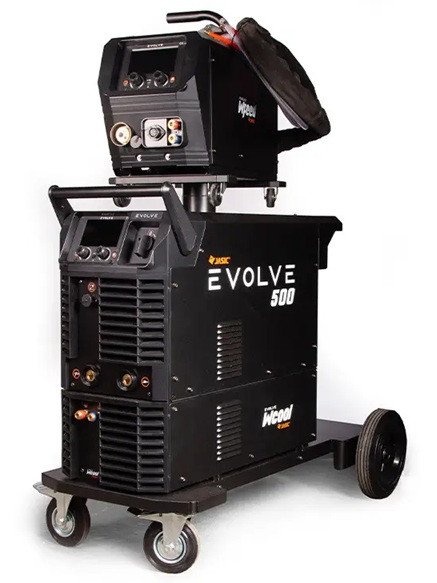 Jasic MIG-500P (N3D1) Evolve este varful gamei Evolve, destinat utilizarii intensive si profesionale. Puterea mare, impreuna cu blocul de racire cu lichid inclus, permit functionarea continua la sarcina maxima fara intreruperi ale ciclului de sudare. Aparatul este livrat cu carucior pentru transport facil, prevazut cu suport pentru butelie de gaz. Un avantaj major il reprezinta structura modulara, care permite extinderea functiilor prin adaugarea de module suplimentare, usor de integrat intr-un singur sistem.