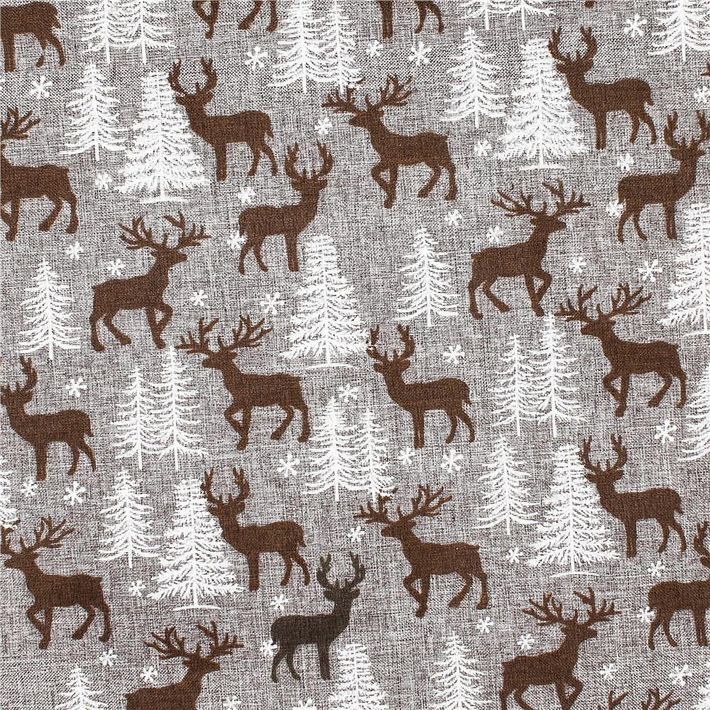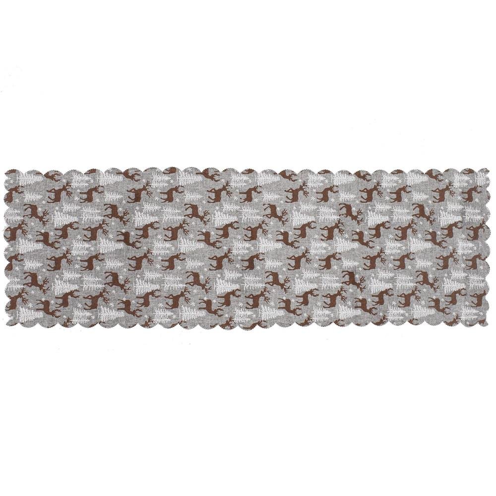 Fata de masa pentru decor, cu motive de Craciun, din stofa, 35x186cm, gri