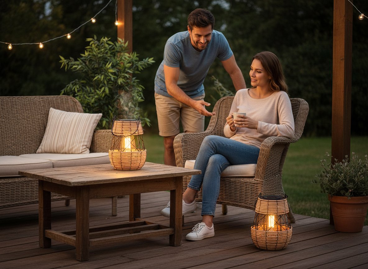 Specificatii tehnice Tip produs: felinar solar decorativ Inaltime: 23 cm Material: metal Culoare: negru/bej Alimentare: panou solar Utilizare: exterior, gradina, terasa, balcon Scurta descriere Felinarul solar metalic este o decoratiune eleganta pentru gradina, terasa sau balcon. Se incarca automat pe timpul zilei cu ajutorul panoului solar integrat, iar seara ofera o lumina ambientala placuta. Designul modern in combinatie de culori negru si bej se potriveste perfect in amenajari contemporane sau rustice. Caracteristici principale Alimentare solara fara cabluri sau baterii suplimentare Lumina ambientala placuta pentru gradina sau terasa Constructie metalica rezistenta pentru utilizare in exterior Design decorativ modern in culori negru si bej Se incarca automat pe timpul zilei Ideal pentru decorarea balconului, gradinii sau terasei Creeaza o atmosfera relaxanta in serile de vara