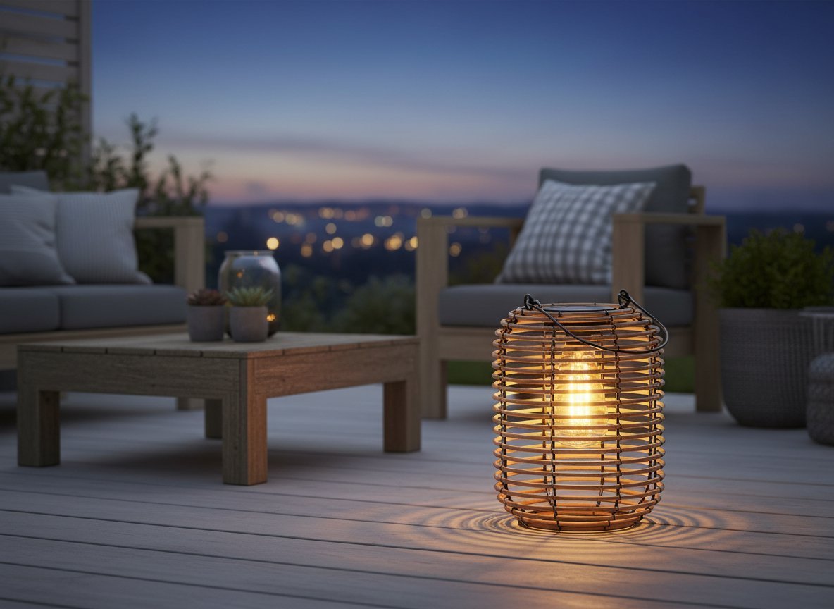 Specificatii tehnice Tip produs: felinar solar decorativ Inaltime: 24 cm Material: metal Culoare: bej Alimentare: panou solar si acumulator Utilizare: exterior, gradina, terasa, balcon Scurta descriere Felinarul solar metalic este o solutie practica si decorativa pentru iluminarea gradinii, terasei sau balconului. Panoul solar integrat incarca bateria in timpul zilei, iar seara felinarul emite o lumina calda si placuta, creand o atmosfera relaxanta. Designul elegant in culoare bej se potriveste perfect in decoruri moderne sau rustice. Caracteristici principale Alimentare solara fara cabluri sau prize Lumina ambientala placuta pentru gradina sau terasa Constructie metalica rezistenta pentru exterior Design decorativ in culoare bej Se incarca automat pe timpul zilei Ideal pentru decorarea spatiilor exterioare Potrivit pentru seri relaxante in aer liber