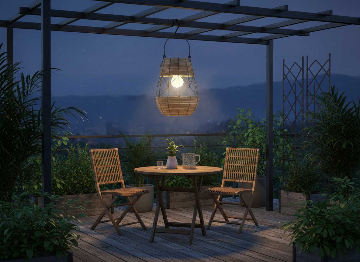 Specificatii tehnice Tip produs: felinar solar decorativ Inaltime: 32 cm Material: metal Culoare: negru/bej Alimentare: panou solar Utilizare: exterior, gradina, terasa, balcon Scurta descriere Felinarul solar metalic este un element decorativ elegant pentru gradina, terasa sau balcon. Functioneaza pe baza de energie solara, incarcandu-se automat in timpul zilei si oferind seara o lumina calda si ambientala. Designul modern in combinatie de culori negru si bej se potriveste perfect in amenajari moderne sau rustice. Caracteristici principale Alimentare solara fara cabluri sau conectare la priza Lumina ambientala placuta pentru gradina sau terasa Constructie metalica rezistenta pentru utilizare in exterior Design decorativ modern in culori negru si bej Se incarca automat pe timpul zilei Ideal pentru decorarea balconului, gradinii sau terasei Creeaza o atmosfera relaxanta in serile de vara