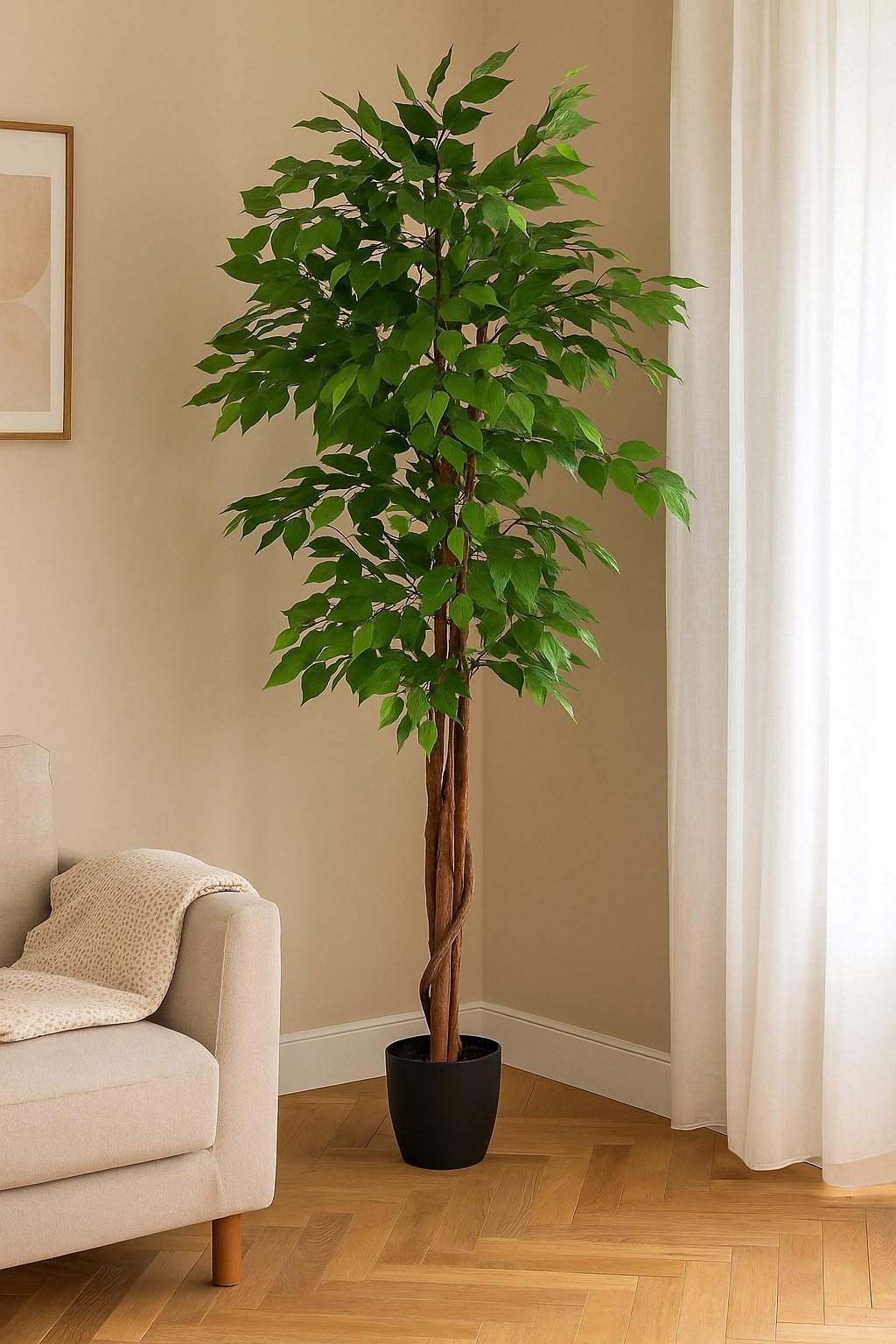 Ficus artificial Atmosphera in ghiveci decorativ, 185 cm, verde