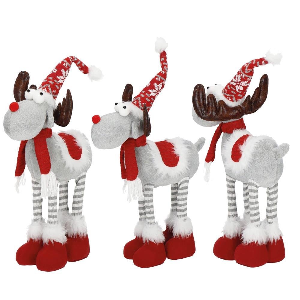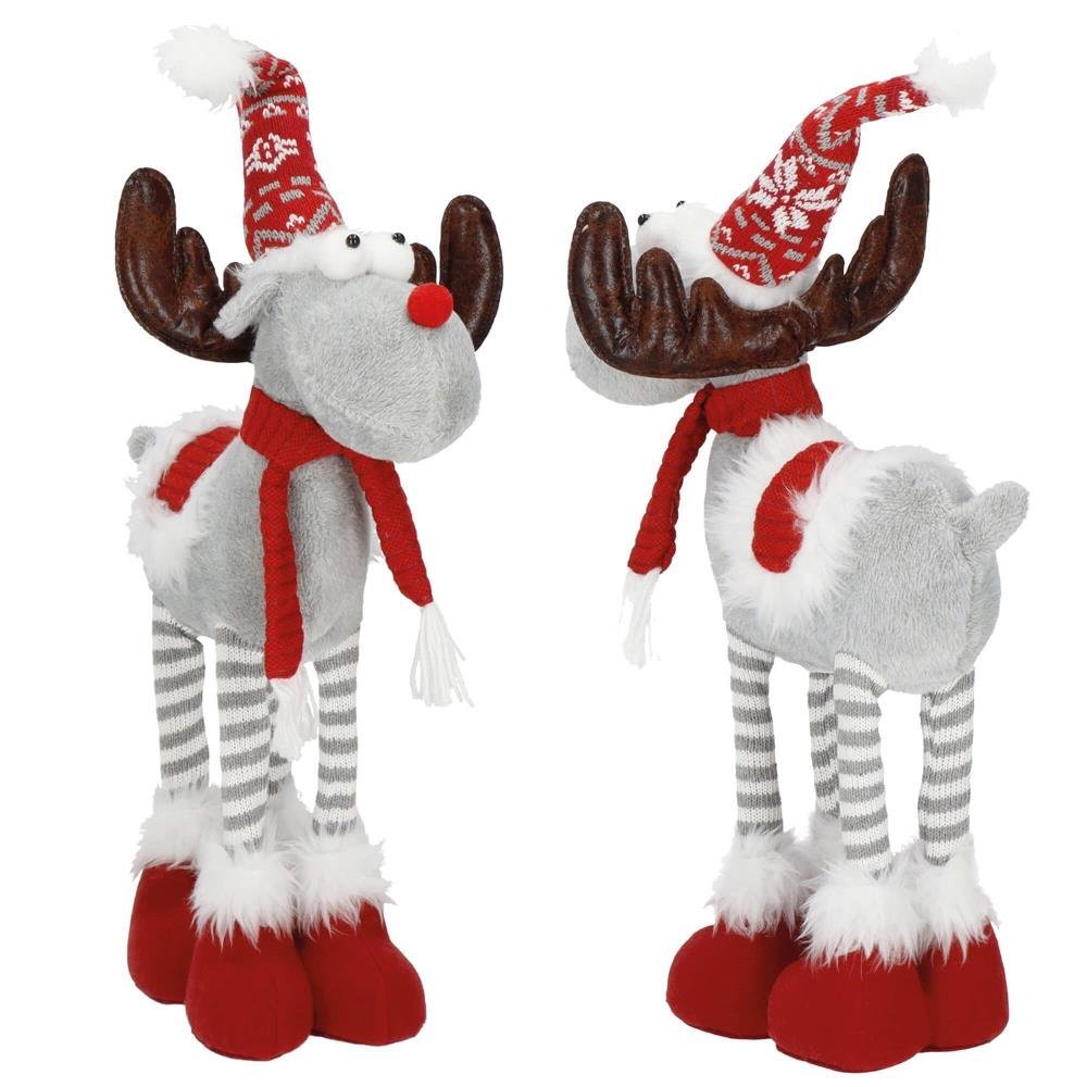 Figurina Craciun, Ren, picioare telescopice, iluminare LED, 61cm