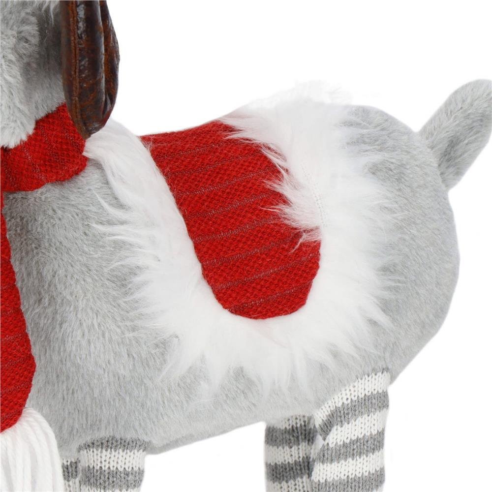 Material: poliester Picioare: telescopice Culoare constanta a luminii: alb cald Alimentare: 3 x baterii de 1,5 V Dimensiuni: Inaltime minima aprox: 61 cm Latime totala: aproximativ 8 cm Informatii suplimentare: Palaria poate fi modelata liber datorita sarmei din interiorul ei Renul de Craciun va fi un element perfect de decor care ne va duce intr-o atmosfera magica si festiva. Datorita picioarelor telescopice, silueta poate fi ajustata in inaltime pentru a se potrivi preferintelor individuale.Decorul include o palarie si o esarfa de Craciun. Sarma din interiorul palariei cu pompon ii permite sa fie indoita in directii diferite. Decorul se va potrivi perfect in camera unui copil, dar va fi si o idee grozava pentru un cadou de Craciun.Mascota este realizata dintr-un material moale, placut la atingere.