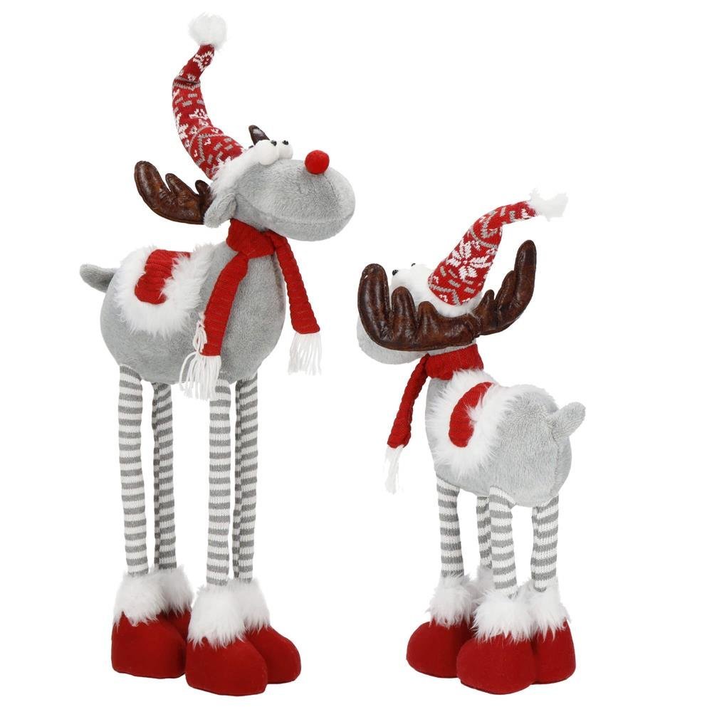 Figurina Craciun, Ren, picioare telescopice, iluminare LED, inaltime reglabila 64-85cm