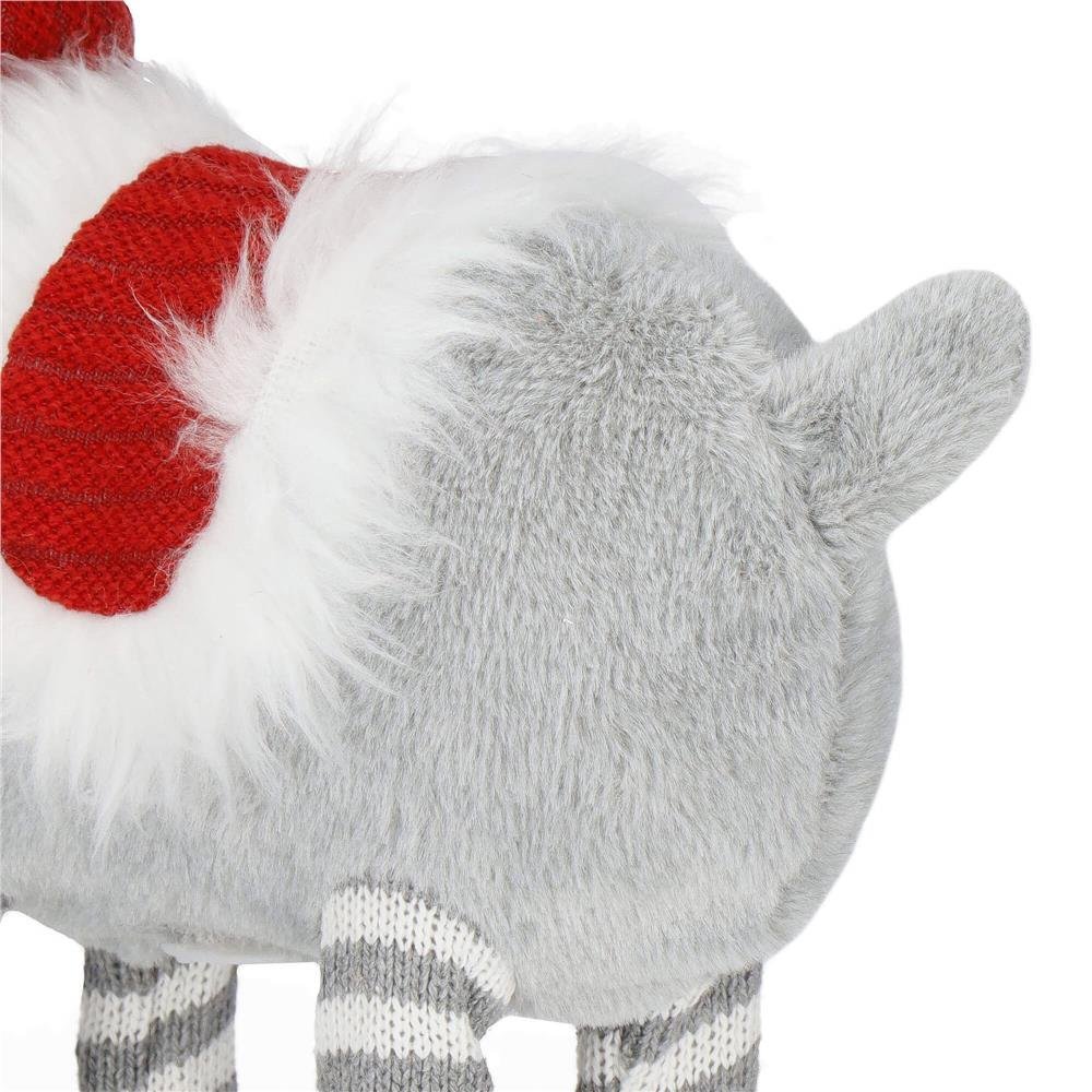 Design: Ren Material: poliester Picioare: telescopice Culoarea permanenta a luminii: alb cald Alimentare: 3 baterii de 1,5 V Dimensiuni: Inaltime minima aproximativ: 64 cm Inaltime maxima aproximativ: 85 Latimea totala: aprox. 8 cm Renul de Craciun va fi un element perfect de decor care ne va duce intr-o atmosfera magica si festiva. Datorita picioarelor telescopice, silueta poate fi ajustata in inaltime pentru a se potrivi preferintelor individuale.Decorul include o palarie si o esarfa de Craciun. Sarma din interiorul palariei cu pompon ii permite sa fie indoita in directii diferite. Decorul se va potrivi perfect in camera unui copil, dar va fi si o idee grozava pentru un cadou de Craciun.Mascota este realizata dintr-un material moale, placut la atingere.