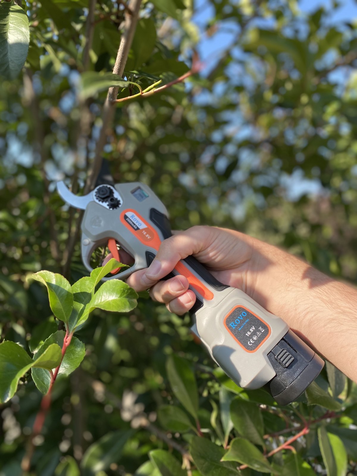 Foarfeca electrica pentru gradina Rovo FV2 PRO, motor brushless, 2 acumulatori 2000mAh, diametru 30mm Recomandat in special profesionistilor din viticultura si pomicultura dar si utilizarii uzuale in gospodarie. Cutitele foarte rezistente si cu protectie impotriva coroziunii cauzate de rugina asigura o durata de utilizare indelungata material SK5. Specializata in toaletarea arbustilor, gardului viu, copacilor si arbustilor de vita de vie cu capacitatea de a taia cu usurinta crengi de diferite dimensiuni. Alegerea ideala pentru curatarea pomilor fructiferi. Usor de utilizat, trebuie doar sa apasati butonul, ramurile sunt taiate imediat, ramurile sunt taiate perfect uniform. Dupa utilizare curatati foarfeca de aderentele vegetale, seva, pamant, etc. Ofera o autonomie lunga a bateriei de pana la 3-4 ore si incarcare de 2-3 ore. Utilizare usoara: Datorita manerului sau anti-alunecare usor si moale, fierastraul este usor de manevrat. Specificatii: Tensiune de lucru: 16.8V Taiere ramuri de maxim 30MM Motor: 3145 Brushless Putere nominala: 300W Motor fara perii (motor brushless) Domeniul de aplicare: ramuri de flori, ramuri de fructe, plante in ghiveci etc Acumulator 16.8V 2000mAh de mare capacitate pentru utilizare fara fir. Maner ergonomic si confortabil. Zgomot redus, rezistenta buna la uzura. Flexibil in utilizare, usor de rotit, sigur si de incredere, usor de intretinut, convenabil pentru a inlocui bateria si a opera. Pachetul include: Foarfeca Rovo FV2 PRO 2X acumulatori Adaptor alimentare Ascutitor lama Chei reglaje Geanta de transport
