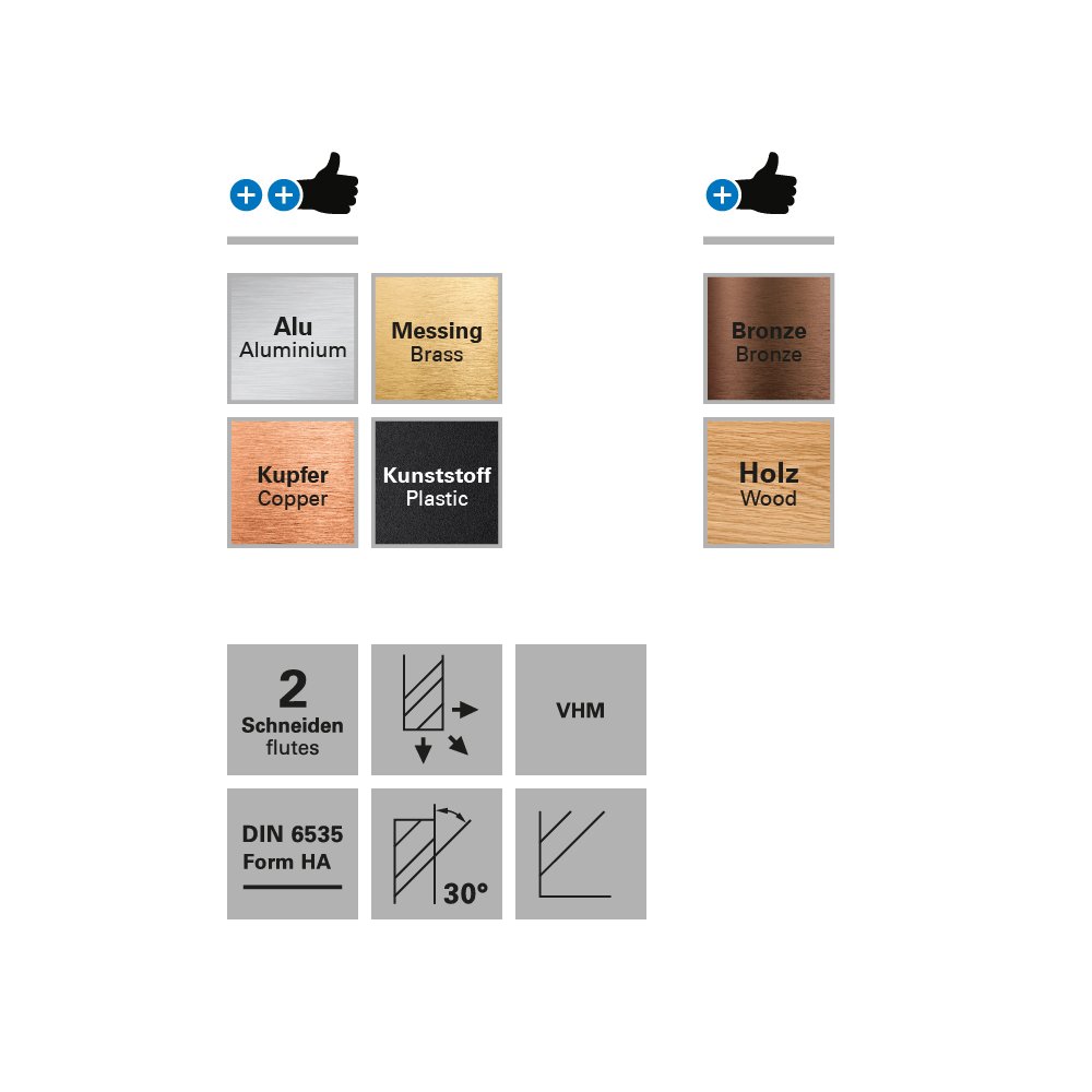 Pentru prelucrarea generală, multifuncțională, freza cu două caneluri este o unealta versatila. Este ideala pentru prelucrarea materialelor și aliajelor mai dure. Freza este echilibrata și puternica, producând vibrații minime, ceea ce se traduce prin finisaje de suprafață bune. Aceste freze sunt perfecte pentru aluminiu, alamă, materiale plastice, compozite exotice și metale dure.