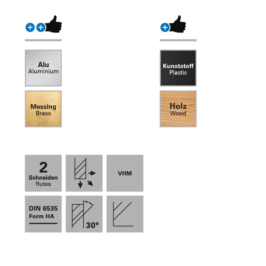 Acest model de freze sunt ideale pentru taierile de mare viteza in aluminiu sau alama (HSC = High Speed Cutting). Helixul mare evacueaza rapid materialul rezultat din taiere, permitand viteze mari de avans fara infundarea canalelor de evacuare. Datorita design-ului special acest model de freze sunt ideale pentru frezarile in aluminiu si alama, dar putand procesa in anumite conditii si materiale precum plastic sau lemn.