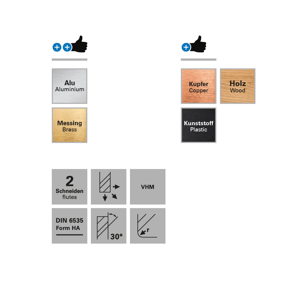 Acest model de freze cu doua caneluri, sunt ideale pentru prelucrari, atunci cand finisarea suprafetelor este importanta. Ele sunt de obicei folosite pentru finisarea buzunarelor (frezari de adancime) sau pentru efectuarea unor taieturi mai usoare. De asemenea ele pot fi folosite in aplicatii unde sunt necesare diametre mici ale varfurilor deoarece frezele cu doua caneluri sunt mai rezistente decat cele cu o canelura. Frezele sunt realizate din micro carburi, au o viata lunga de utilizare si sunt disponibile cu diferite diametre ale varfurilor si lungimi de taiere, diferite diametre de prindere si geometrii pentru aplicatii speciale.