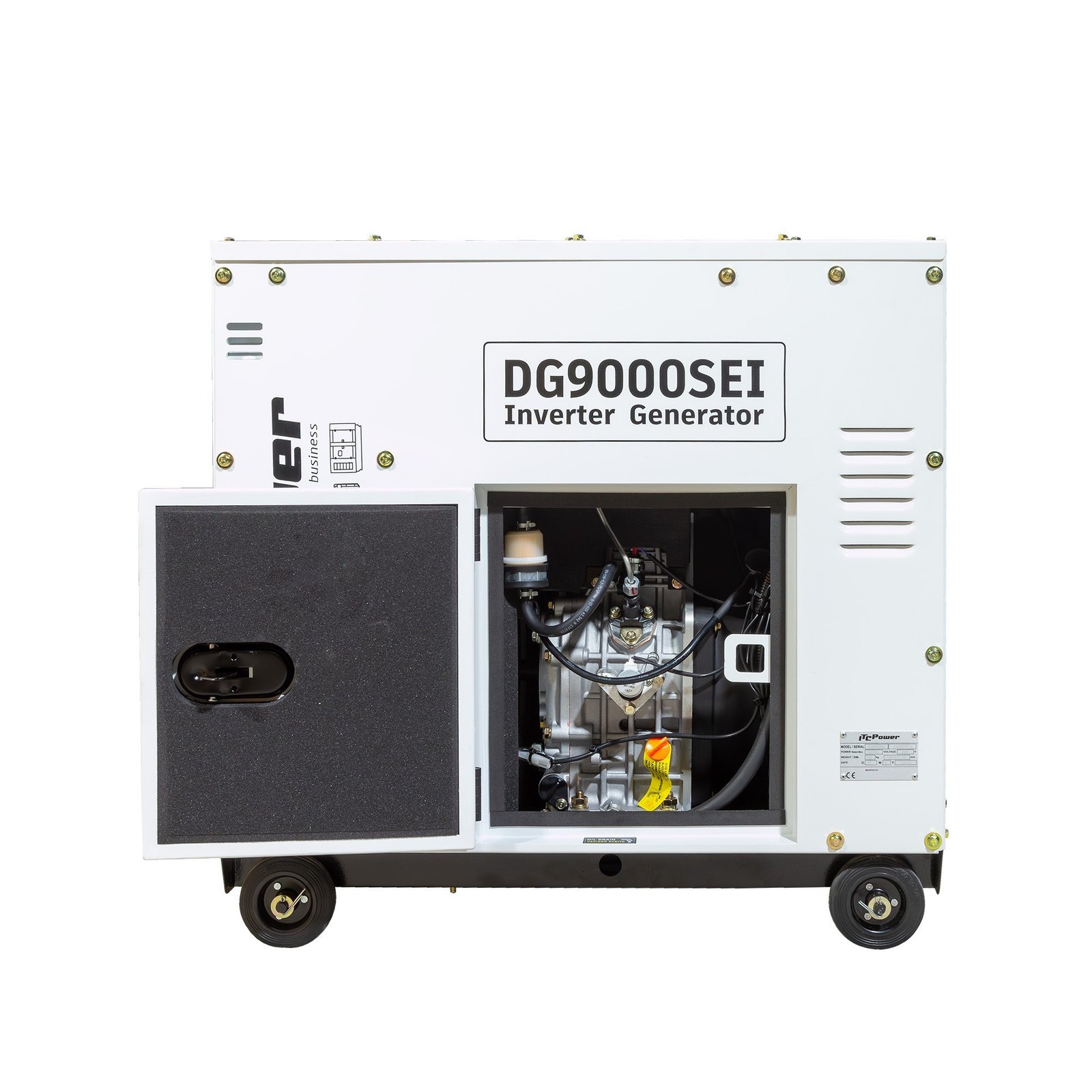 DG9000SEi isi adapteaza turatia la sarcina reala — consum cu pana la 30% mai mic si zgomot redus automat la sarcini mici. La sarcina mare, turatia creste imediat.