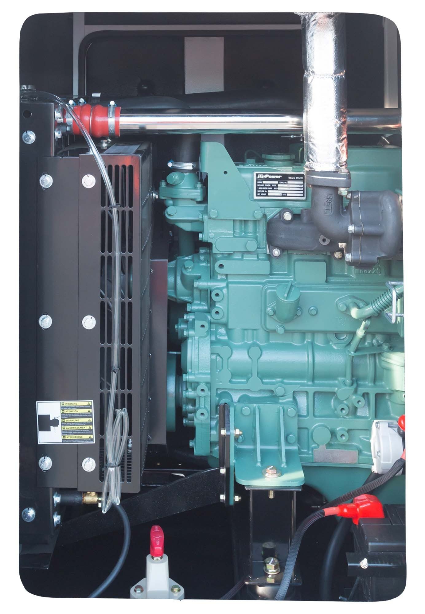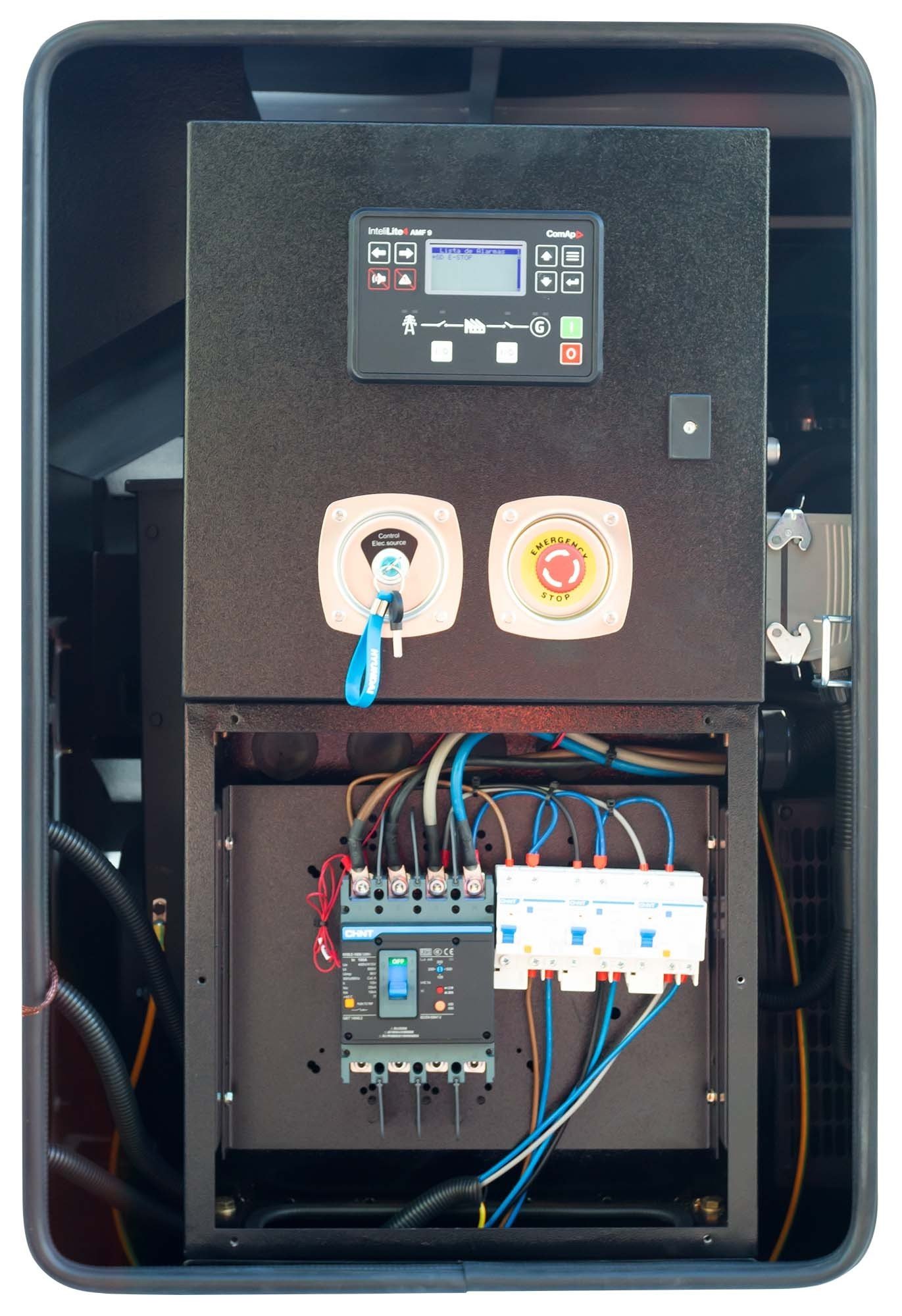 Generator trifazat 66 kVA / 53 kW, motor 4 cilindri 4200cc racit apa, 1500 rpm, 68 dBA, rezervor 180L, ~12 ore, alternator 100% cupru, AVR, MRS10, ATS, baterie inclusa.
