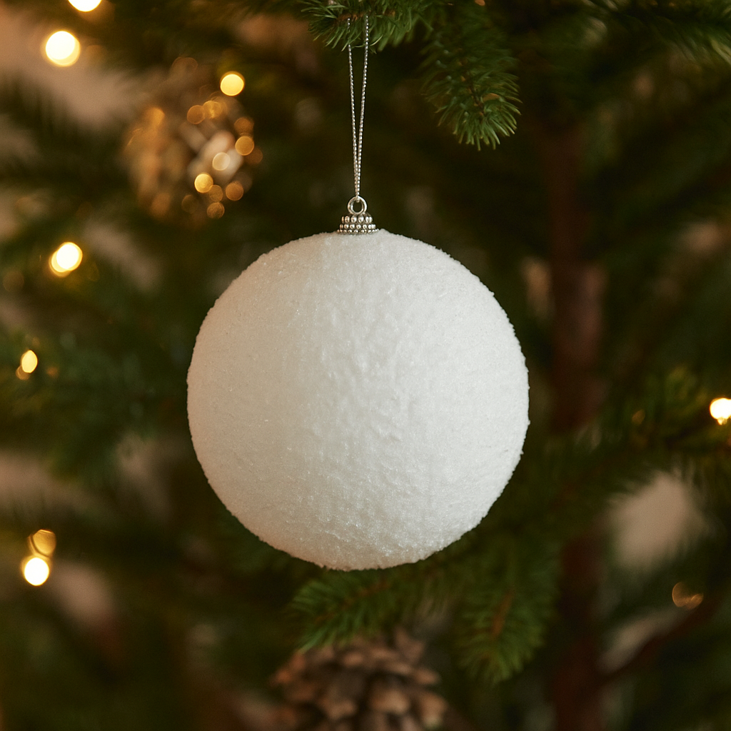 Specificatii tehnice Material: PS/PP Culoare: Alb Dimensiuni produs: D. 15 x H. 15.5 cm Scurta descriere Globul decorativ in forma de bulgare de zapada este o piesa versatila pentru decorul de iarna. Realizat din polistiren si polipropilena, este usor si rezistent, perfect pentru a fi suspendat, asezat sub brad sau integrat in aranjamente festive. Culoarea alba aduce un aer de prospetime si eleganta decorului. Caracteristici principale Design tip bulgare de zapada Culoare alba, potrivita decorului de iarna Material usor si durabil Poate fi suspendat sau asezat pe suprafete Ideal pentru decoruri de Craciun elegante