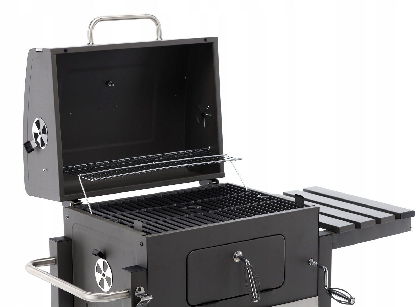 Specification: Gratar dreptunghiular pe carbuni, cu suport lateral si termometru capac, 115x60x108cm