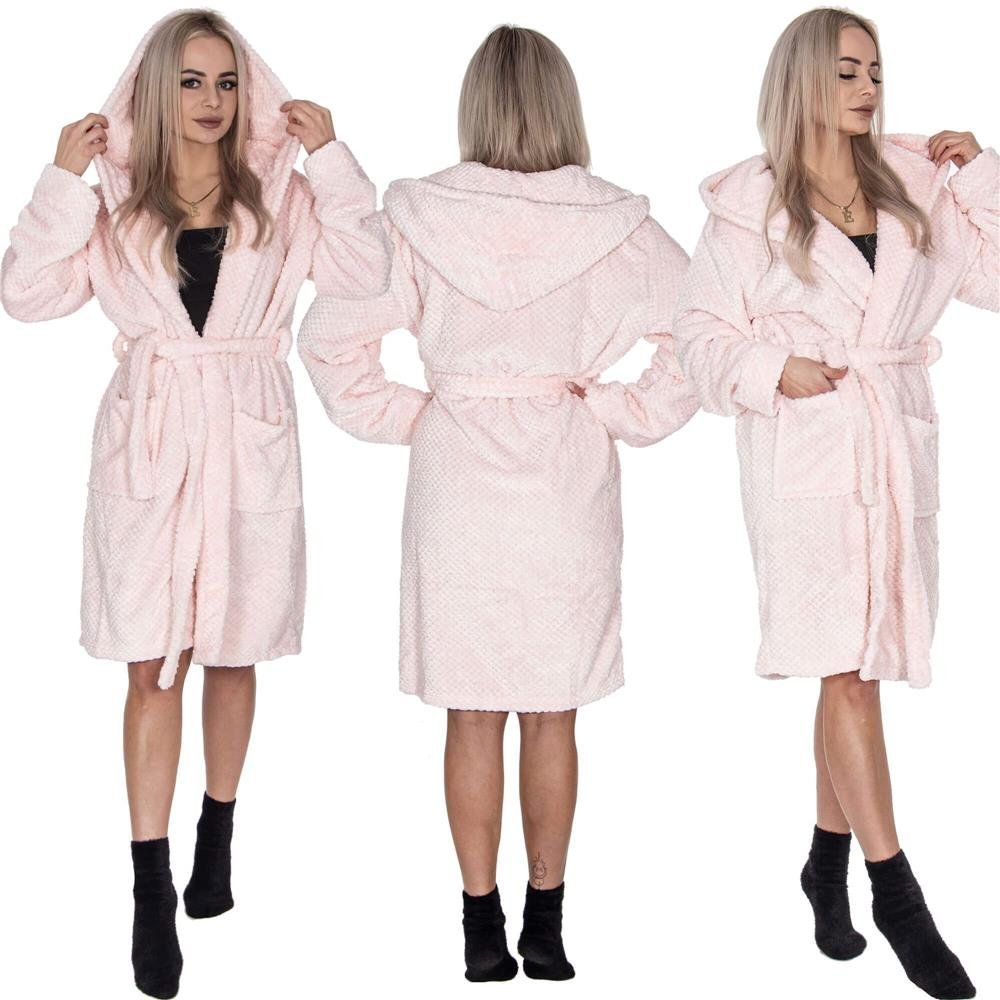 Halat de baie pentru femei pana la genunchi, cu gluga, marimea L/XL, roz