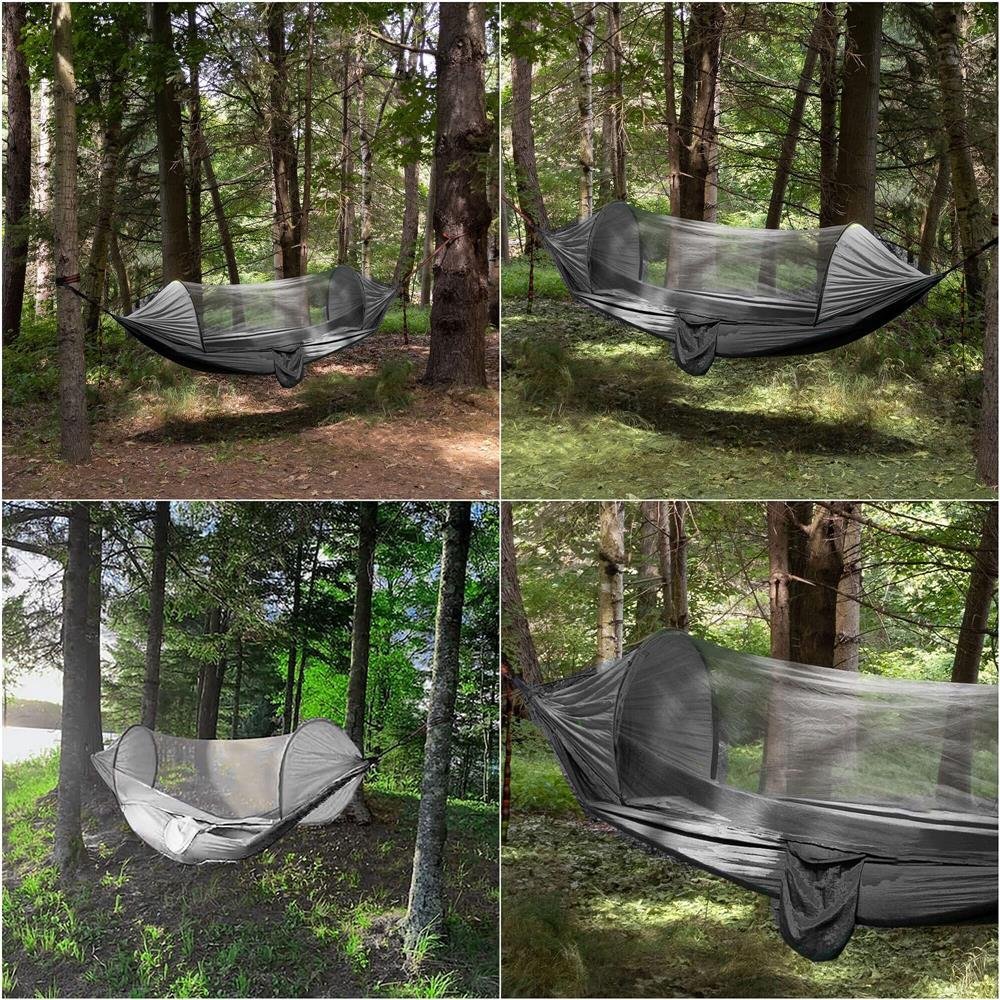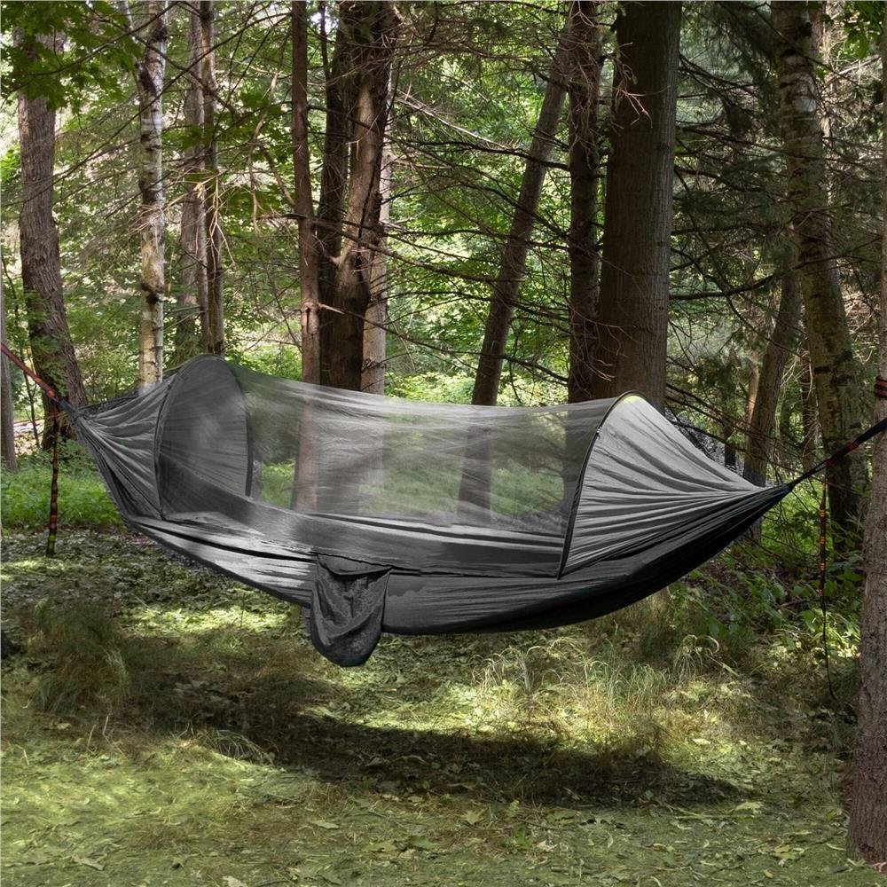 Specification: Hamac dublu din material parasuta 140x260cm, cu plasa de tantari si geanta transport, gri