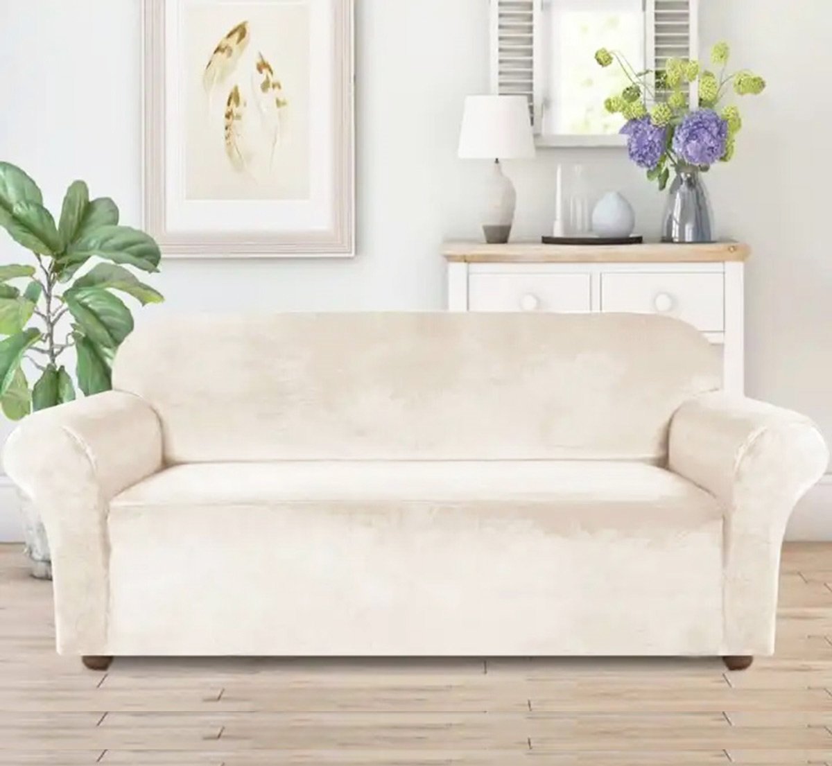 Specification: Husa universala pentru canapea standard cu 3 locuri, imitatie catifea, culoare BEJ