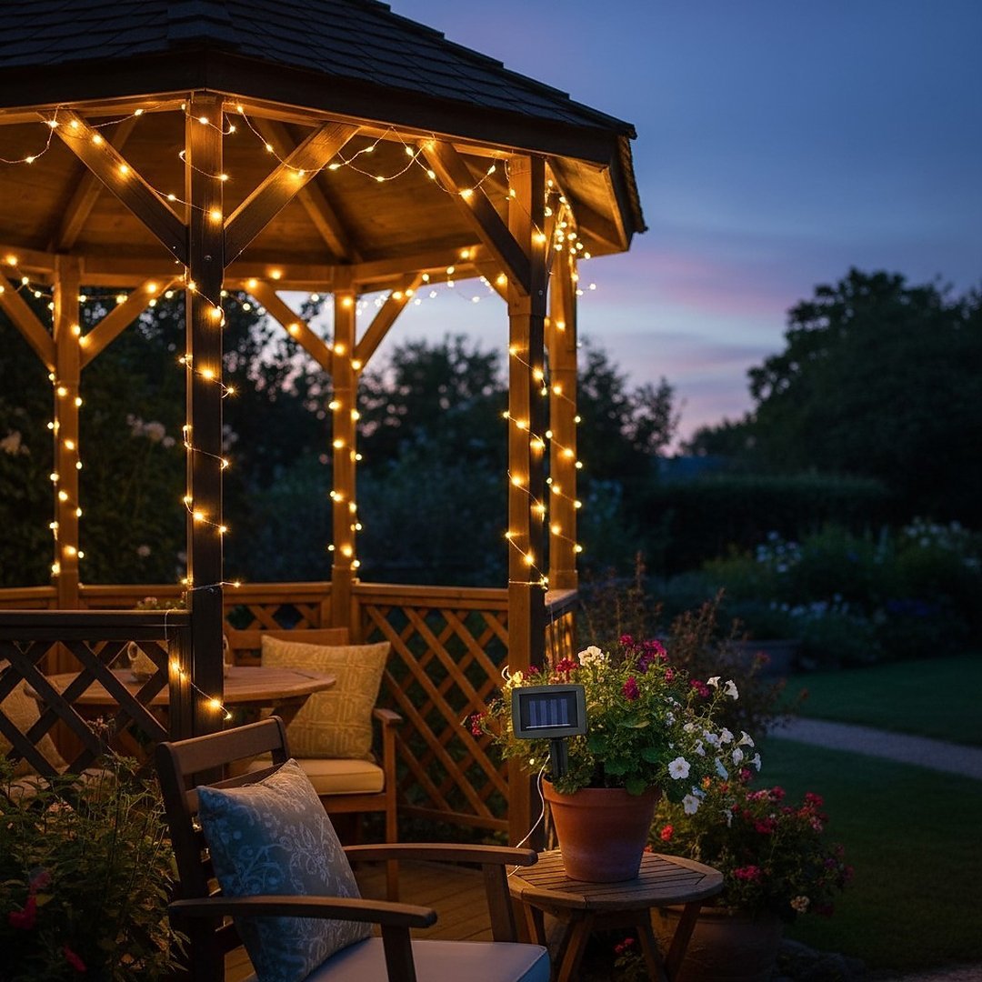 Specificatii tehnice Numar LED: 100 LED Culoare lumina: Alb cald Lungime cablu: 2 m + 9.9 m Distanta intre LED: 10 cm Moduri iluminare: Lumina continua sau intermitenta Grad protectie: IP44 Panou solar: Siliciu policristalin Baterie: 1.2V AA 400 mAh Ni-MH Timp incarcare: 7–8 ore Timp functionare: 6–7 ore Alimentare: Solara Culoare cablu: negru Scurta descriere Instalatia luminoasa solara cu 100 LED-uri alb cald este ideala pentru decorarea gradinii, terasei, balconului sau a aleilor. Functioneaza pe baza de energie solara, incarcandu-se in timpul zilei si iluminand automat dupa lasarea serii. Lungimea cablului de aproximativ 12 metri permite decorarea facila a copacilor, gardurilor sau pergolelor, oferind un efect luminos placut si elegant. Caracteristici principale Iluminare decorativa cu 100 LED-uri alb cald Functionare solara fara cabluri sau costuri de electricitate Doua moduri de iluminare: continuu sau intermitent Lungime mare a cablului pentru decorarea spatiilor exterioare Rezistenta la intemperii datorita protectiei IP44 Ideala pentru gradina, terasa, balcon sau decor festiv exterior
