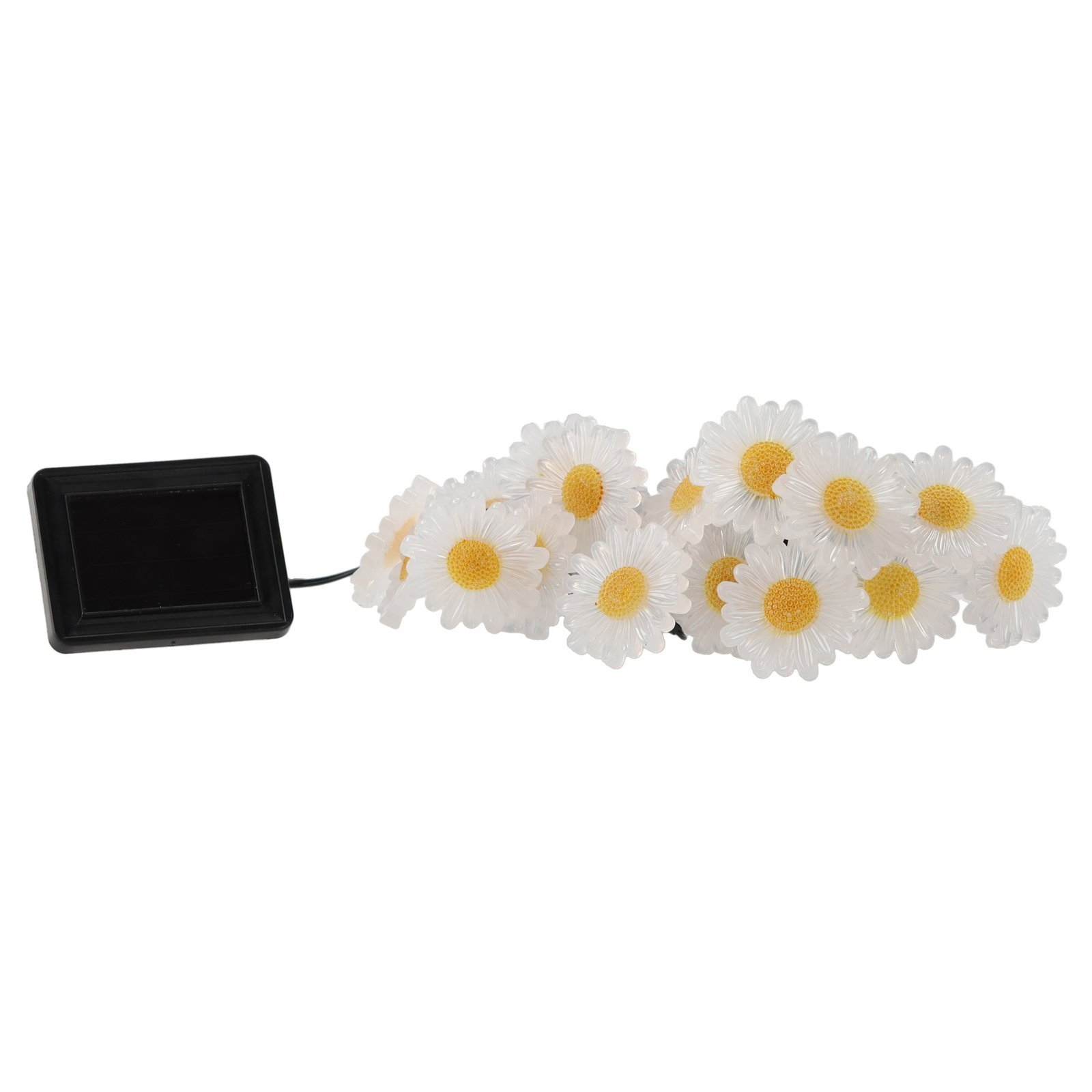 Instalatie luminoasa solara exterior, becuri in forma de margarete, 20 LED alb cald, 2 m + 3.8 m, 2 moduri iluminare, IP44, alb