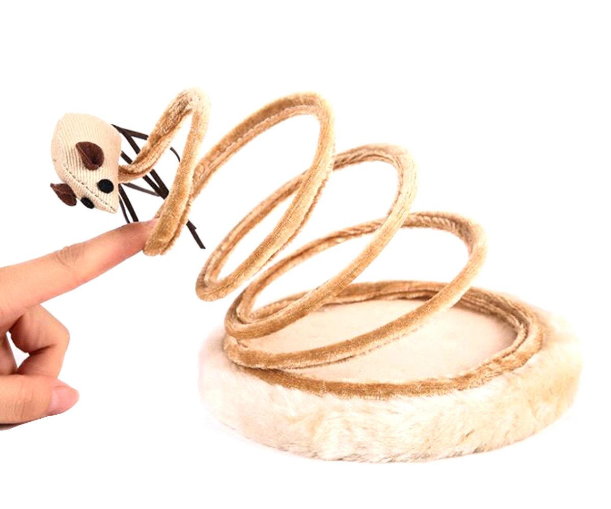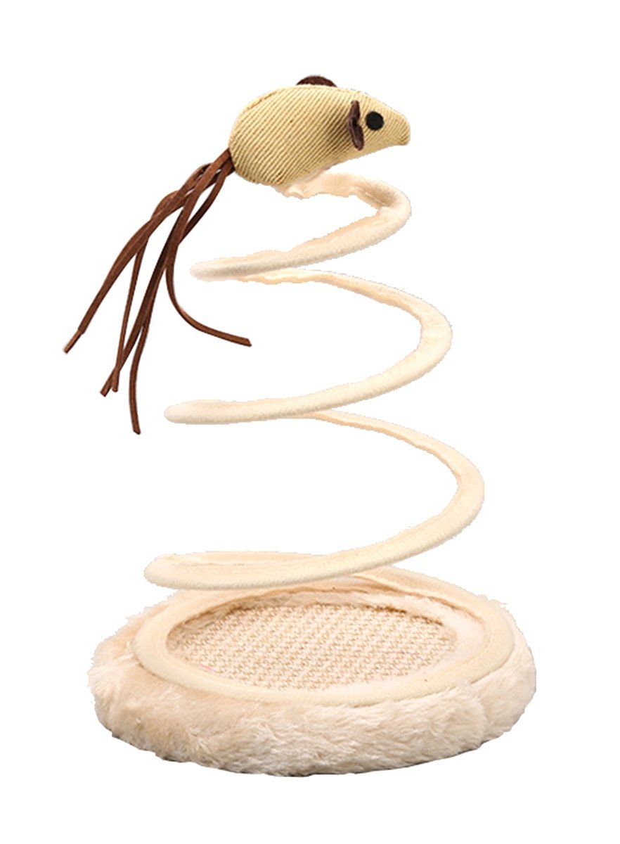 - Un șoarece de sisal cu o coadă lungă montat pe un arc.