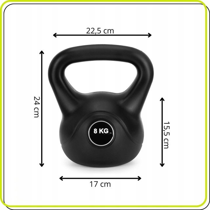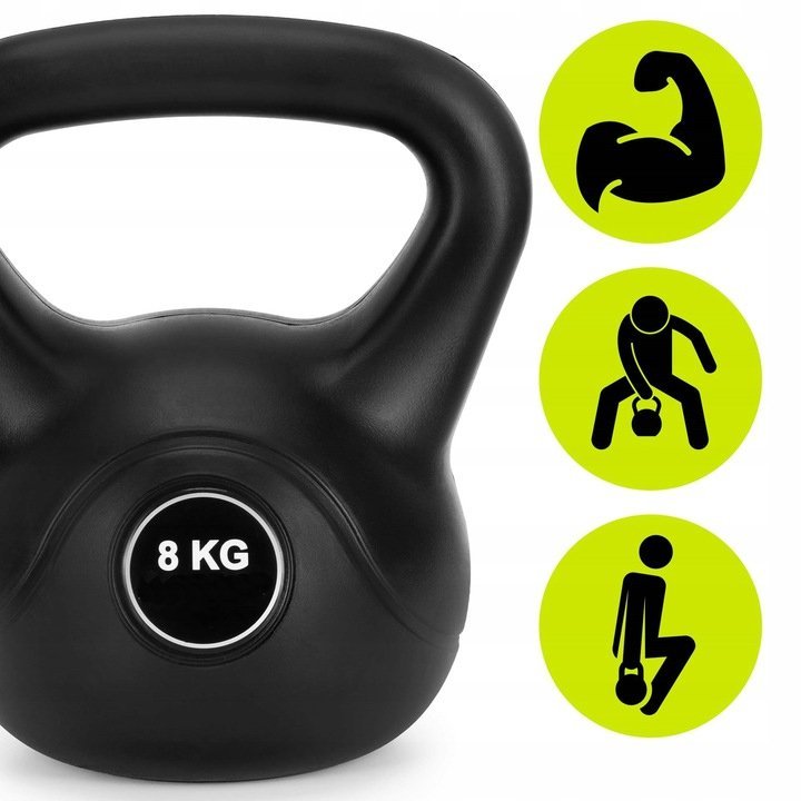 Specification: Kettlebell 8 kg, bitum cu invelis rezistent ABS, 24×23 cm, negru