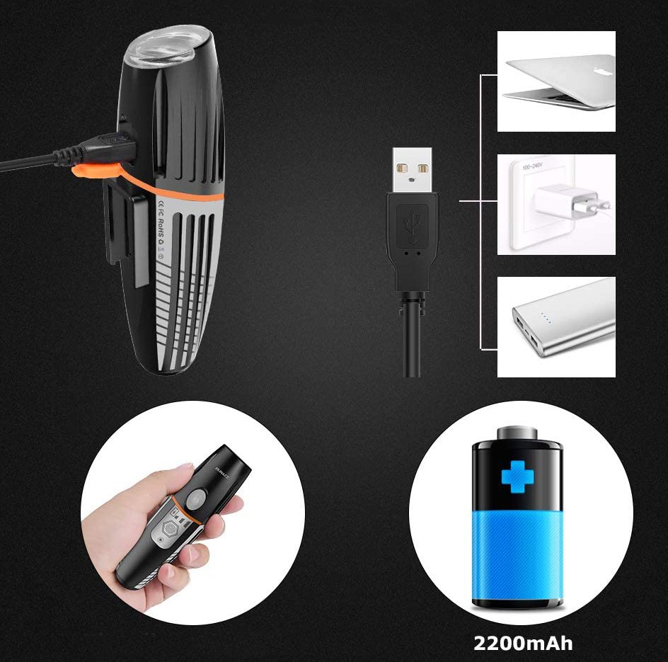 Specification: Lampa LED pentru bicicleta, reincarcabila USB, rezistenta la apa, 2200 mAh, autonomie pana la 15 ore
