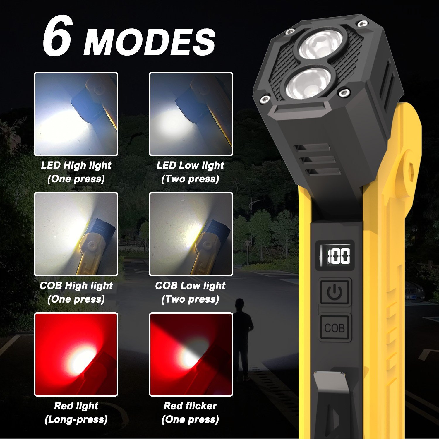 Lanterna Multifunctionala LED Superfire GM06, USB-C, 1500mAh, 355lm, 216m, power bank, lumina rosie, prindere magnetica, IP44 – Galben